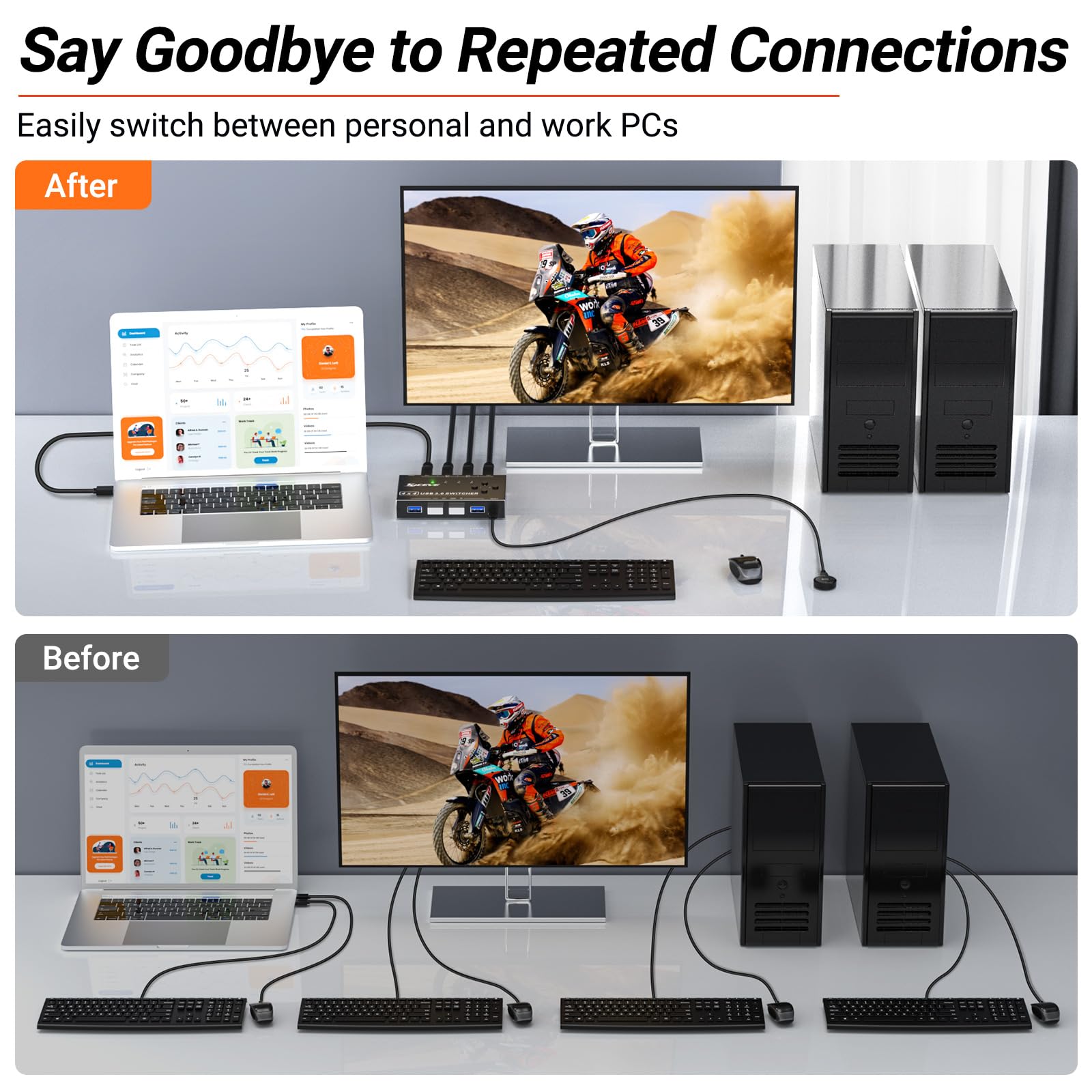 Switch USB 3.0 de 4 Computadoras, MLEEDA 4 Puertos USB