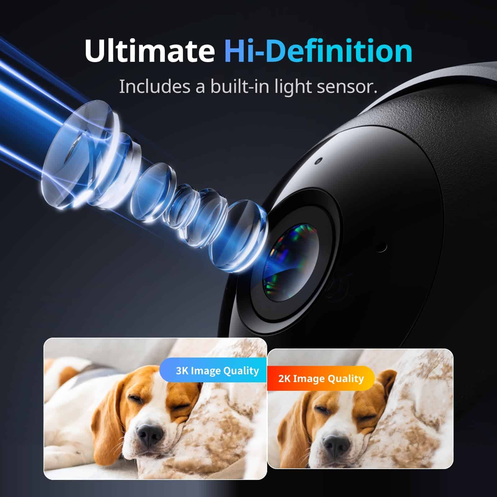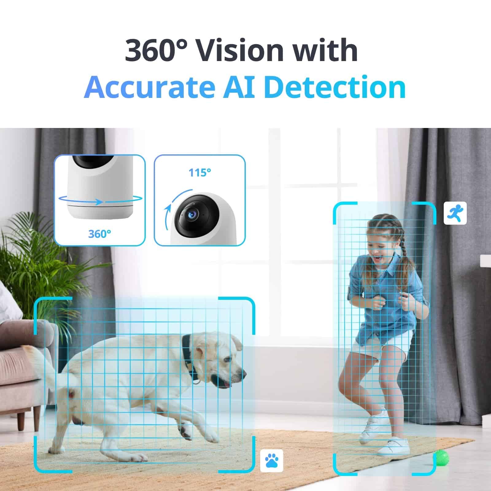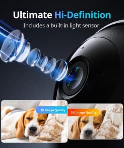 1. 5MP Ultra High-Def, Para una protección más clara: Pan/Tilt Cam Plus 3K cuenta con una lente de 5MP emparejada con un módulo de lente de alta resolución que puede capturar imágenes más claras y colores más realistas, haciendo que cada movimiento sea visible. Perfecto para vigilar mascotas, seres queridos o incluso insectos y plantas. Compatible con Wi-Fi de 2.4GHz y se puede configurar en solo unos minutos.