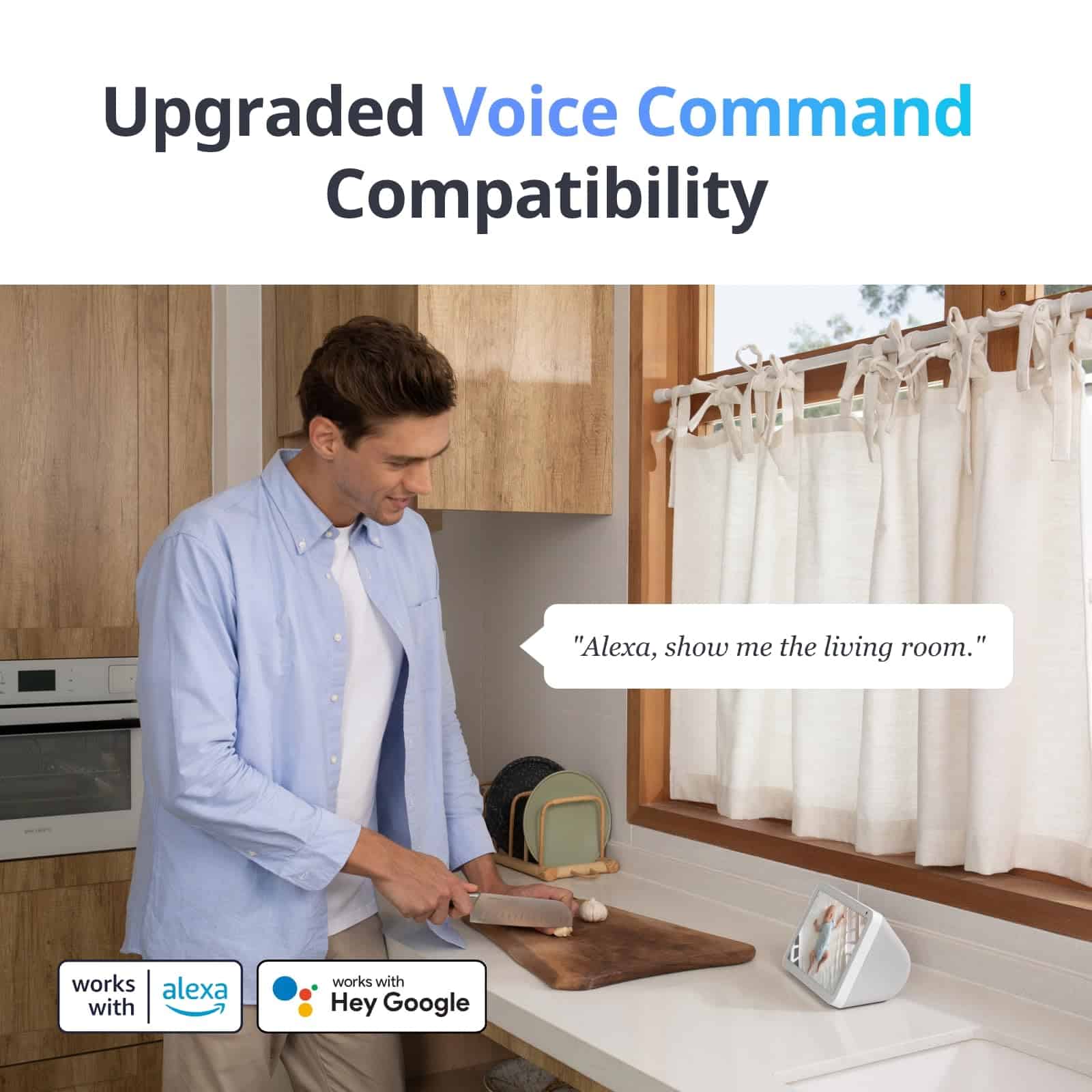 5. Control por voz y conversación bidireccional: Puedes controlar este dispositivo con comandos de voz sencillos para hacer cosas como activar el modo de seguridad al salir de casa. Esto significa que si alguien entra a tu casa, Echo Show sonará automáticamente una alarma y te alertará. Y al volver a casa, simplemente di «Alexa, activa el Modo de Privacidad» y Pan/Tilt Cam ocultará su lente para proteger tu privacidad. Soporta conversación bidireccional para que puedas comunicarte con quien esté junto a tu cámara cuando no estés en casa.