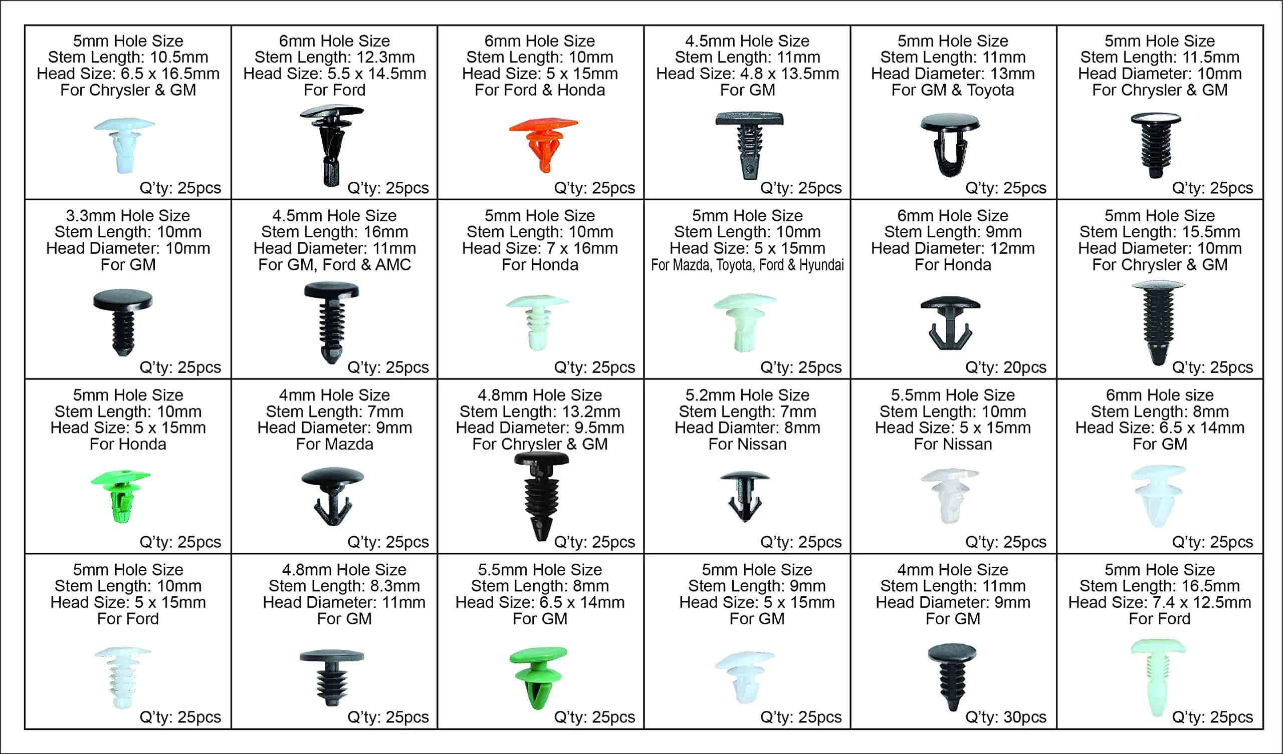 Swordfish 60920 – Juego de clips de retención de burletes para automóviles japoneses importados y automóviles nacionales, paquete de 600 piezas en total de 24 tamaños