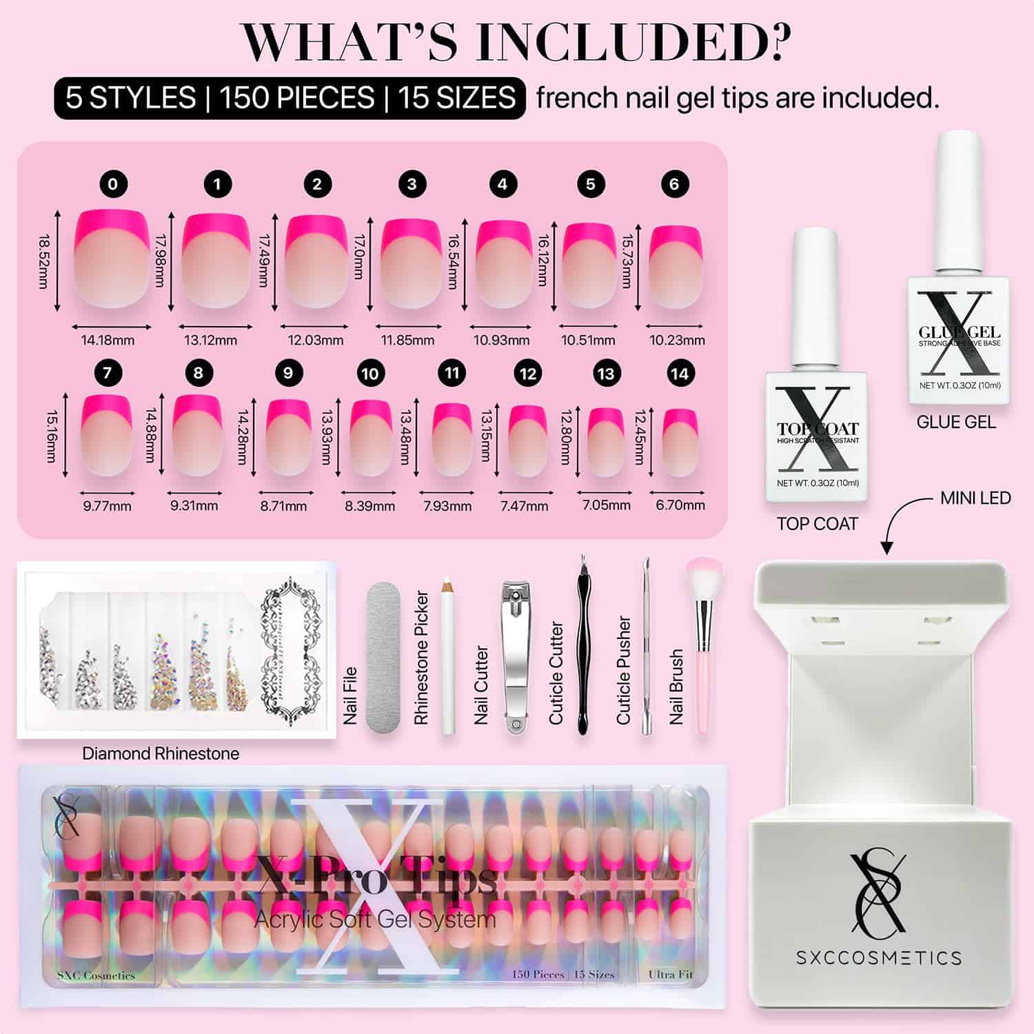 SXC Cosmetics X-Pro Tips Uñas Postizas de Punta Francesa –