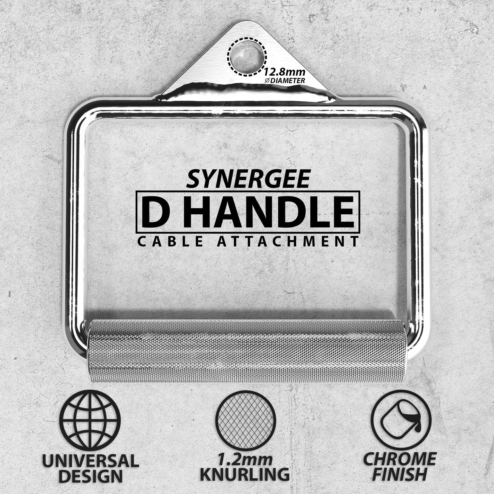 1. FUERTE Y VERSÁTIL Nuestros Accesorios de Cable Synergee D Handle están hechos con acero de alta calidad. ¡Además, están recubiertos de cromo para resistir el óxido y aumentar su longevidad! Los mangos estriados proveen un agarre antideslizante mientras trabajas en tus dorsales, trapecios, bíceps, romboides, músculos serratos y básicamente todos los músculos de la parte superior de tu cuerpo!.