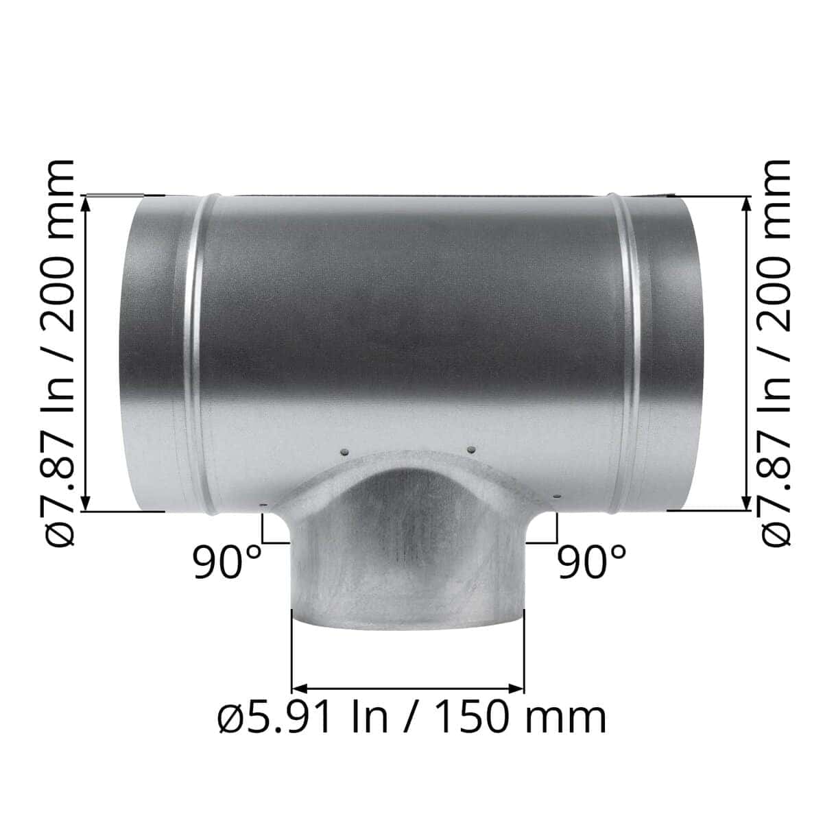 T-Junta Divisora de Conducto de 8 Pulgadas a 6 Pulgadas de