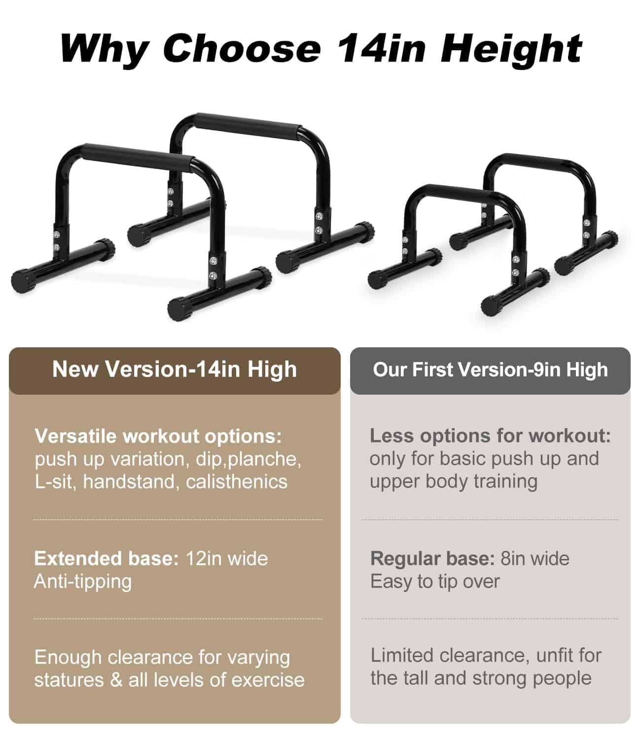 TABEKE Push Up Bar, Parallettes & Dip Bar de Acero de 14»