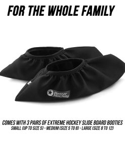 La Tabla de Deslizamiento de Hockey de Better Hockey, que mide 96 pulgadas de longitud, se ajusta fácilmente a cualquier longitud y viene con 3 pares de botines en tallas pequeñas, medianas y grandes, para que toda la familia pueda disfrutar de tiempo en el hielo.