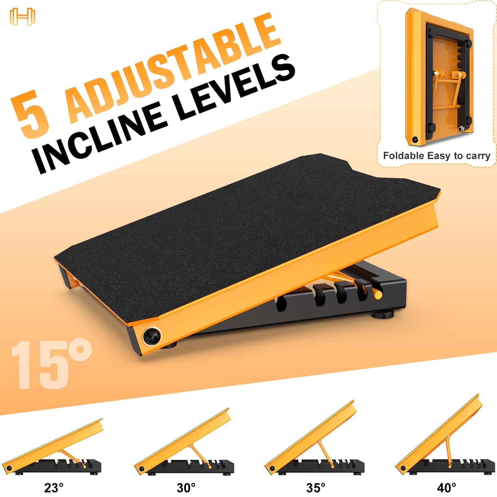Pies antideslizantes: El tablero para estirar la pantorrilla inclinada viene con 4 pies de goma antideslizantes, evita daños en los pisos y aumenta la estabilidad y el equilibrio del producto.
