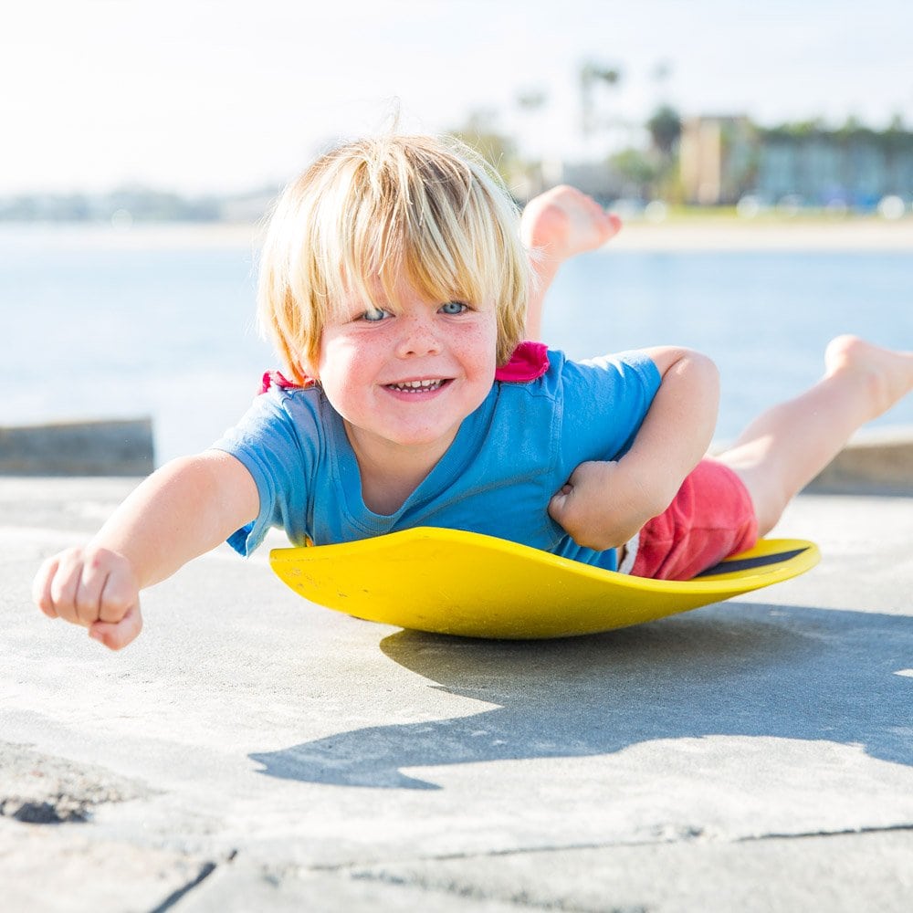 La tabla Spooner Freestyle es la introducción definitiva al surfing, skateboarding y snowboarding. ¡Practica todos tus movimientos en cualquier superficie, en interiores o exteriores! A los niños les encanta sentarse, pararse, balancearse, voltear, girar y deslizarse en esta tabla de entrenamiento increíblemente versátil. Este es el juguete perfecto para mejorar la fuerza y estabilidad central, la fuerza de piernas, el equilibrio, la coordinación y las habilidades motoras gruesas. La tabla Spooner también es excelente como tabla de fitness para adultos. Ya sea retorciéndose, equilibrándose o simplemente meciéndose en tu escritorio de pie, todos pueden disfrutar la diversión. ¡Surfea la superficie!