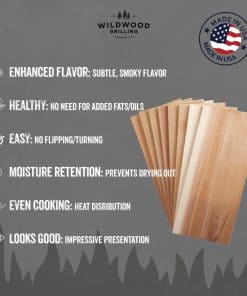Eleva tu experiencia de parrilla con estas tablas de cedro rojo occidental XL. Inspiradas en las tradiciones de los nativos americanos, estas tablas son perfectas para infundir un rico sabor ahumado en una variedad de alimentos, como pescados, vegetales y carnes. Las tablas generosas de 7″x15″ son lo suficientemente grandes para acomodar un filete completo de salmón, y el paquete conveniente incluye 8 tablas para que puedas disfrutar de múltiples sesiones de parrilla. El cedro rojo no solo añade un sabor único y aromático a tus platos, sino que también proviene y se fabrica en EE. UU. para garantizar la calidad y autenticidad del producto.