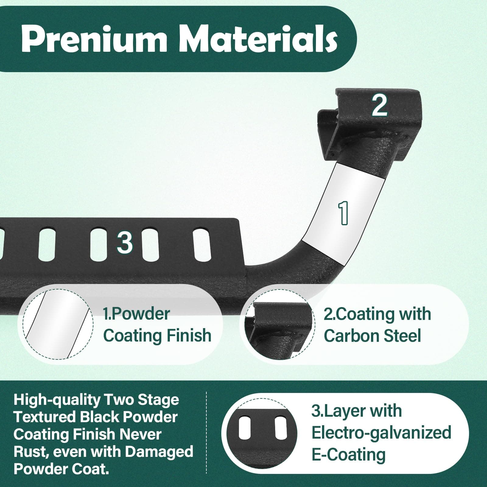 Tablas de Inicio YZONA para Ford Bronco 2021 2022 2023 con Pasos Laterales Desplegables Compatibles con Las Barras de Roca, Placas de Paso de Acero Resistente (2 Pzas, Recubiertas de Polvo Negro) – Las Tablas de Inicio YZONA son compatibles con los modelos de Bronco de 2 puertas del 2021, 2022 y 2023 con las barras de roca OEM. Su instalación es fácil y rápida en 8 minutos. El sistema de abrazadera único permite una posición flexible a lo largo de la barra de roca, sin necesidad de cortar o taladrar. Se recomienda una instalación segura antes de conducir. Verificar regularmente si hay componentes sueltos.