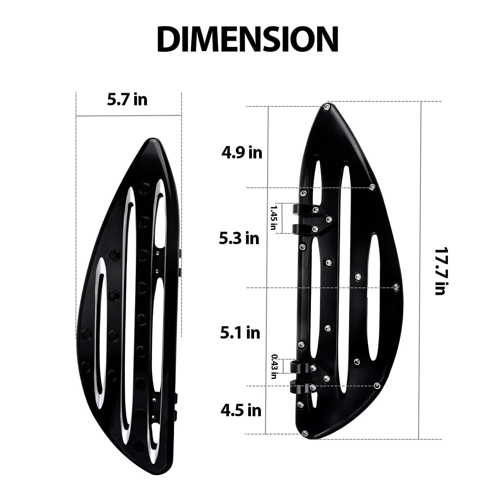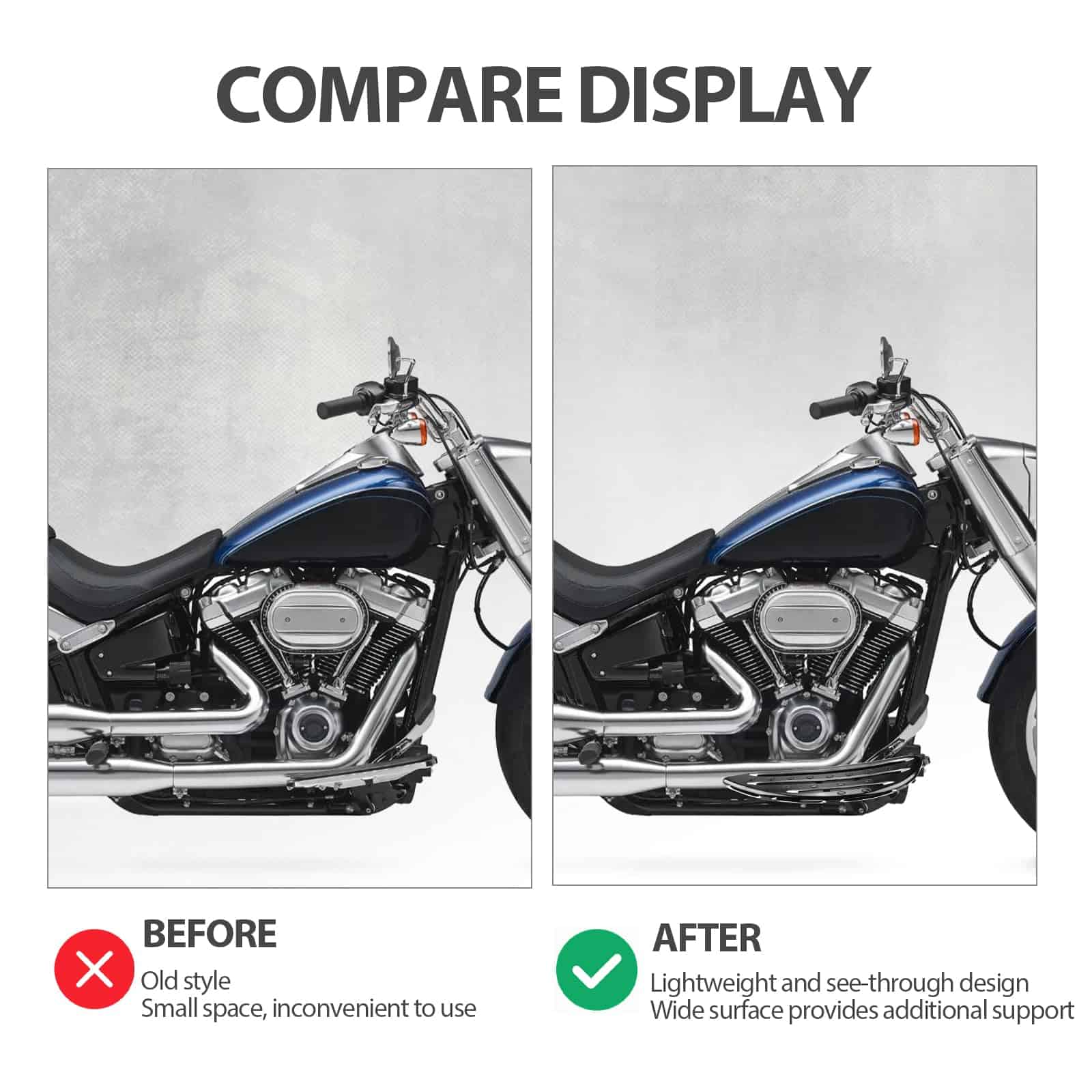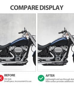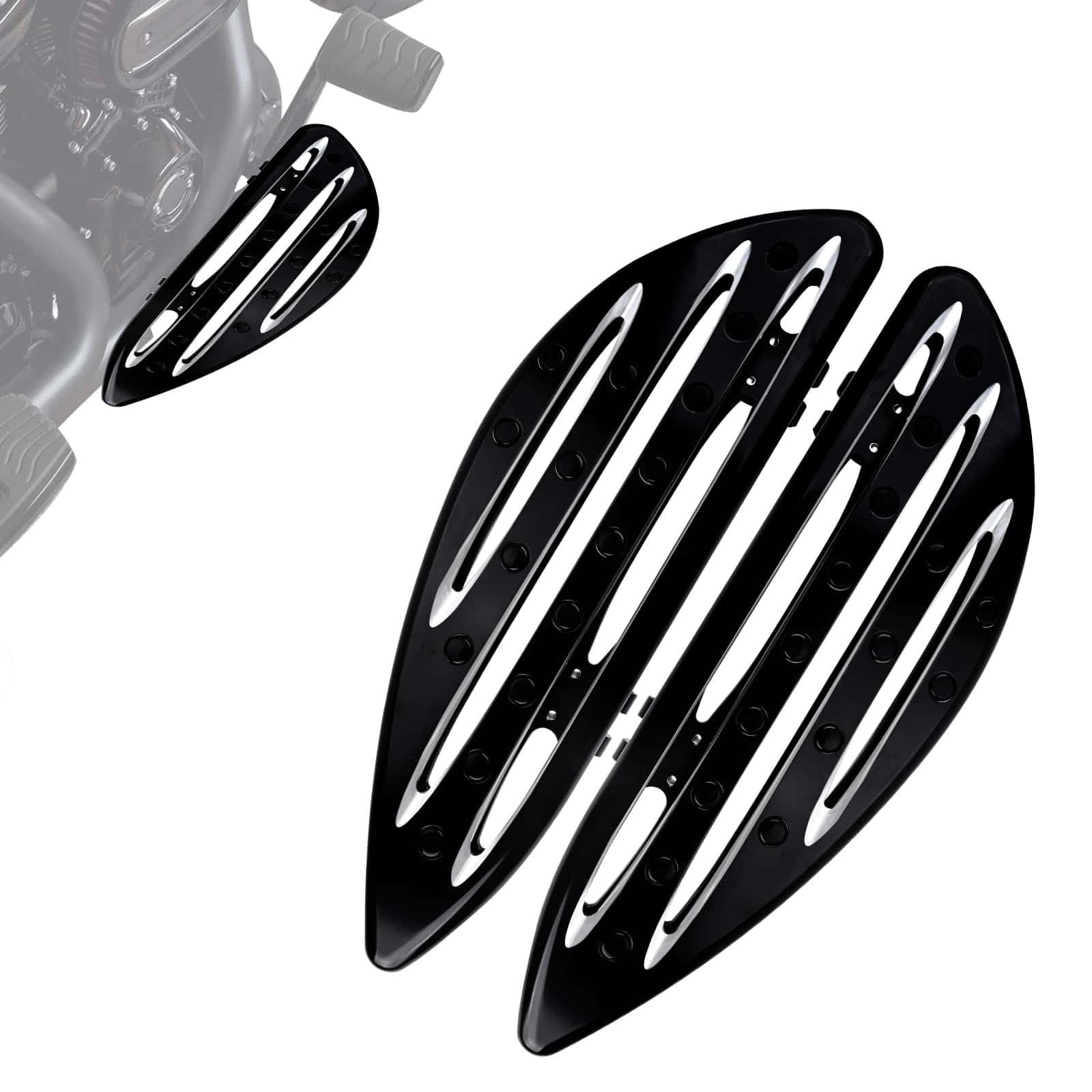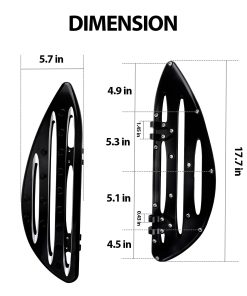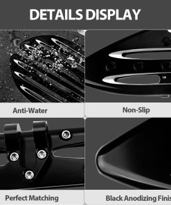 Las Tablas de Piso Delanteras Extendidas para Conductor de Motocicleta FHV en Negro son una excelente adición a tu Harley Touring Softail Electra Glide Road King. Diseñadas para adaptarse a una variedad de modelos, estas tablas de piso no solo aumentarán la comodidad de tu viaje, sino que también mejorarán la apariencia de tu motocicleta. Fabricadas con aluminio billet de alta calidad y sometidas a un tratamiento de anodizado negro, estas tablas son resistentes al desgaste y a la corrosión, lo que garantiza un rendimiento duradero incluso en condiciones extremas. La amplia superficie y los grandes tapones de extremo de estos pedales de pie aseguran que tus pies estén firmemente fijados en su lugar, proporcionando una estabilidad excepcional durante la conducción a alta velocidad. Además, su diseño plegable hace que sean fáciles de transportar y almacenar. El paquete incluye 1 par de tablas de piso delanteras para el conductor, por lo que puedes instalarlas fácilmente y disfrutar de una experiencia de conducción más cómoda y segura. Actualiza tu motocicleta con las Tablas de Piso Delanteras Extendidas para Conductor de Motocicleta FHV en Negro y disfruta de un viaje suave y estable en cada viaje.