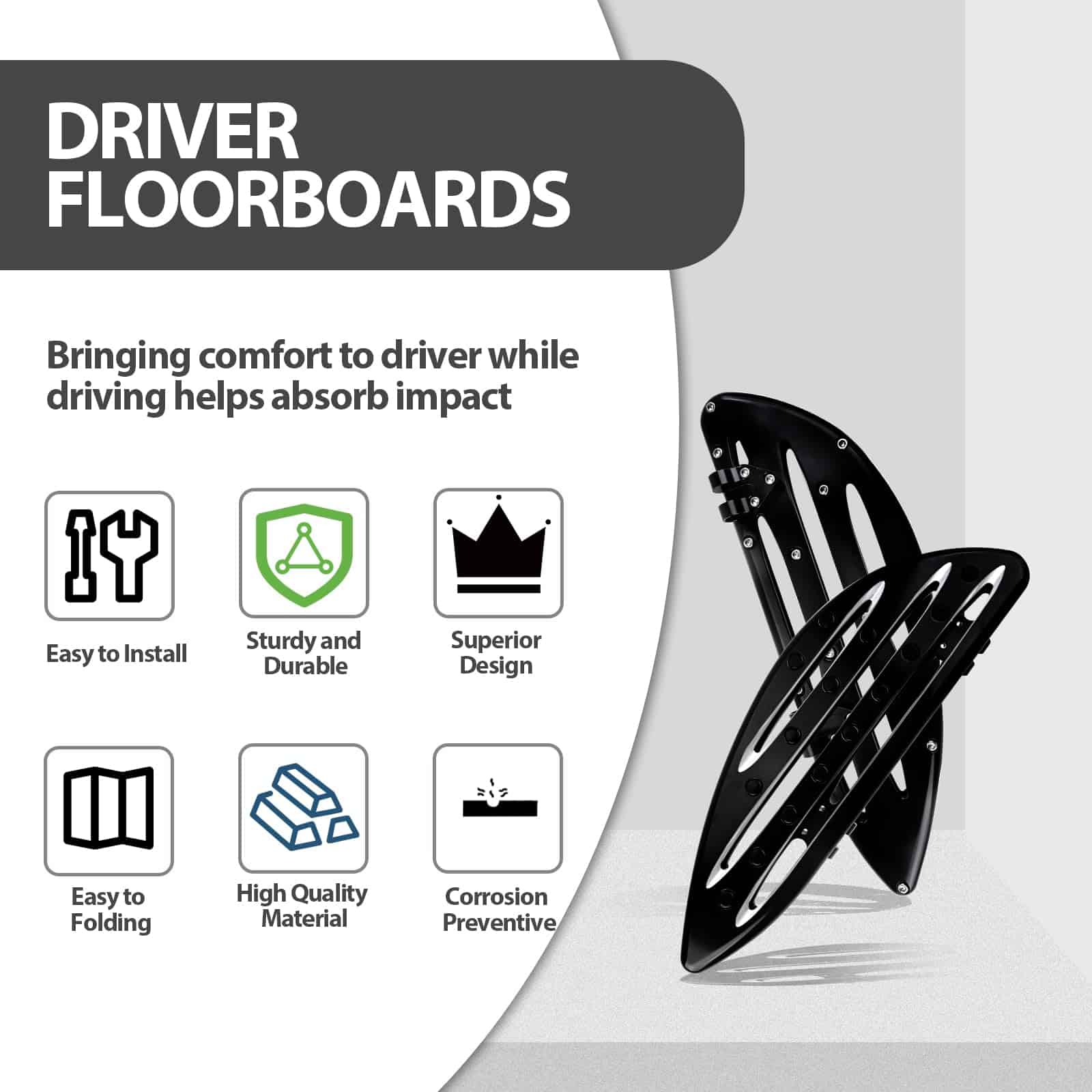 Tablas de Piso Delanteras Extendidas para Conductor de