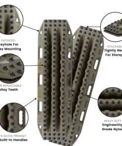 La MAXTRAX Xtreme Vehicle Recovery Boards en color Olive Drab es la solución definitiva para situaciones de recuperación en terrenos difíciles. Con 88 dientes de aleación anodizada de calidad militar que pueden reemplazarse, esta tabla de recuperación es increíblemente resistente y duradera. El refuerzo adicional garantiza un rendimiento óptimo en condiciones extremas. Fabricada en Australia, esta tabla está protegida contra posibles fallos en materiales y mano de obra, brindando confianza en su calidad y rendimiento. Con la MAXTRAX Xtreme, estará preparado para enfrentar cualquier desafío en sus aventuras todoterreno.