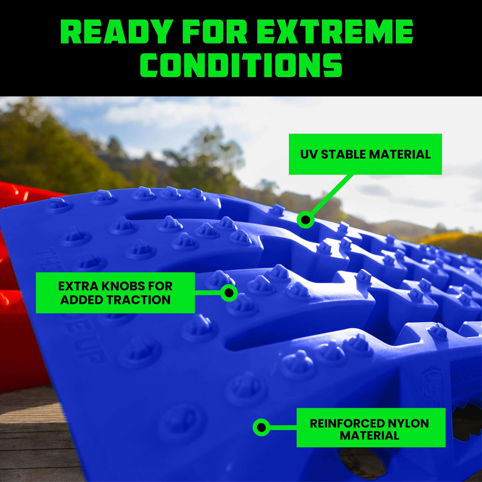Las tablas de tracción Rhino USA son tablas de recuperación resistentes diseñadas para ayudar a los conductores a sacar sus vehículos de terrenos difíciles como arena, barro, nieve y hielo. Estas tablas de tracción están hechas de materiales de alta calidad resistentes a agrietamiento, roturas y daños por rayos UV. El diseño ligero de estas tablas las hace fáciles de manejar y maniobrar, incluso en terrenos desafiantes. También están diseñadas con asas ergonómicas para facilitar su transporte y colocación bajo las ruedas del vehículo. Las tablas de tracción Rhino USA son una herramienta confiable y efectiva para cualquier conductor que frecuentemente se aventura fuera de la carretera o conduce en condiciones climáticas adversas. Ofrecen una excelente tracción, durabilidad y facilidad de uso, convirtiéndolas en un elemento esencial de equipo de recuperación para cualquier aventura todoterreno u overlanding.