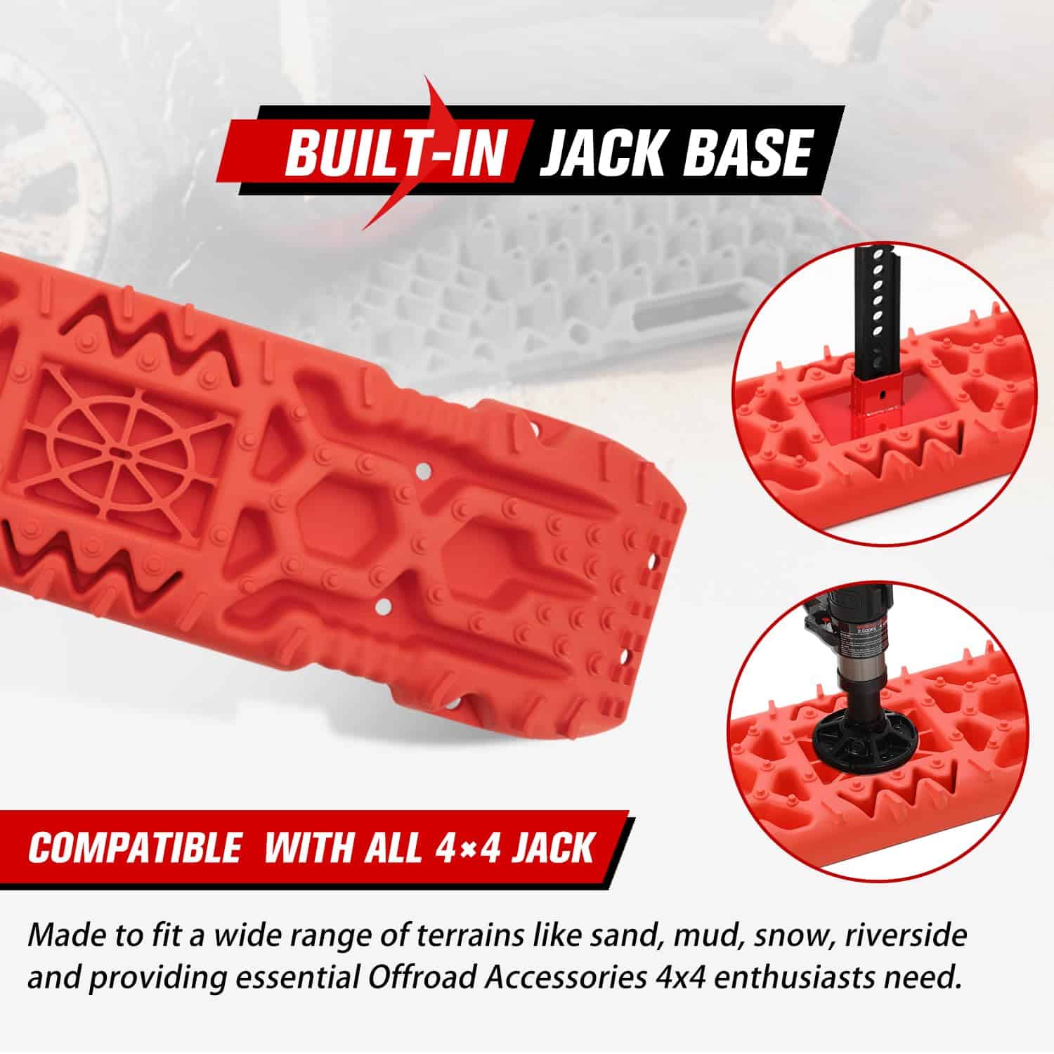 1. Función de Base de Gato: Las tablas de recuperación Fieryred integran bases de gato incorporadas (5 7.4 pulgadas) en el centro para ayudar a levantar su vehículo en condiciones menos ideales. Diseñadas para adaptarse a una amplia gama de terrenos como arena, barro, nieve, ríos y proporcionar los accesorios esenciales para los entusiastas del Offroad 4×4.