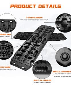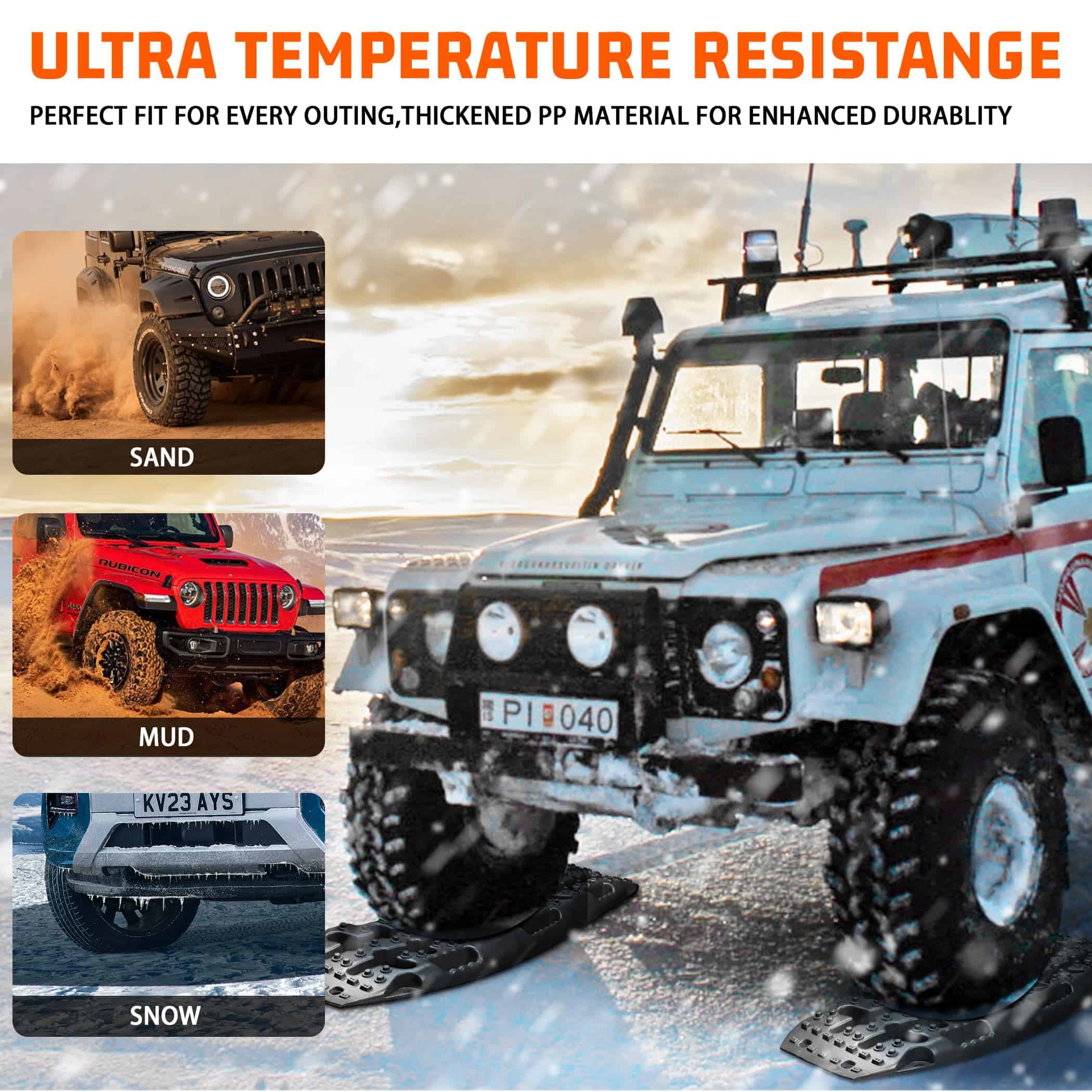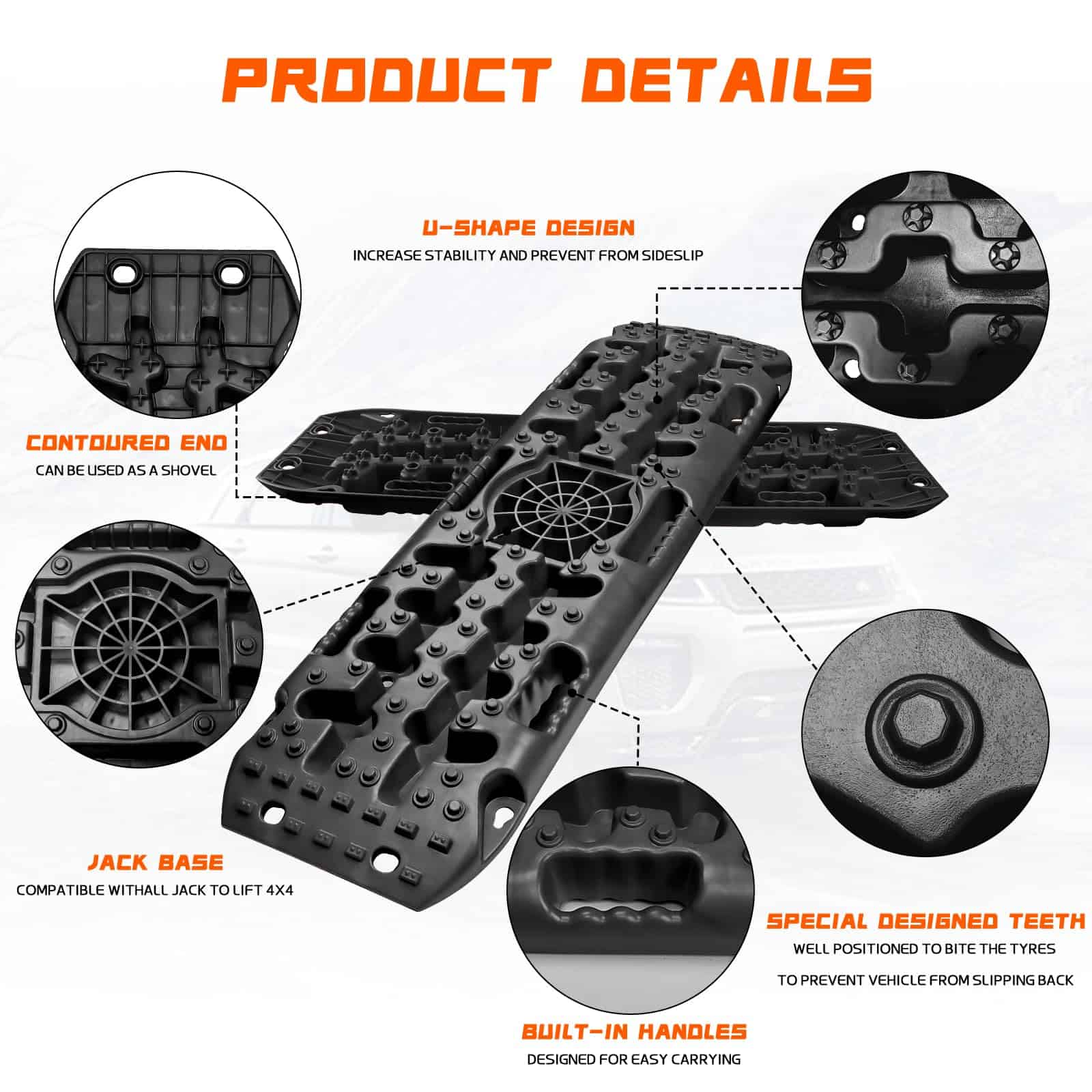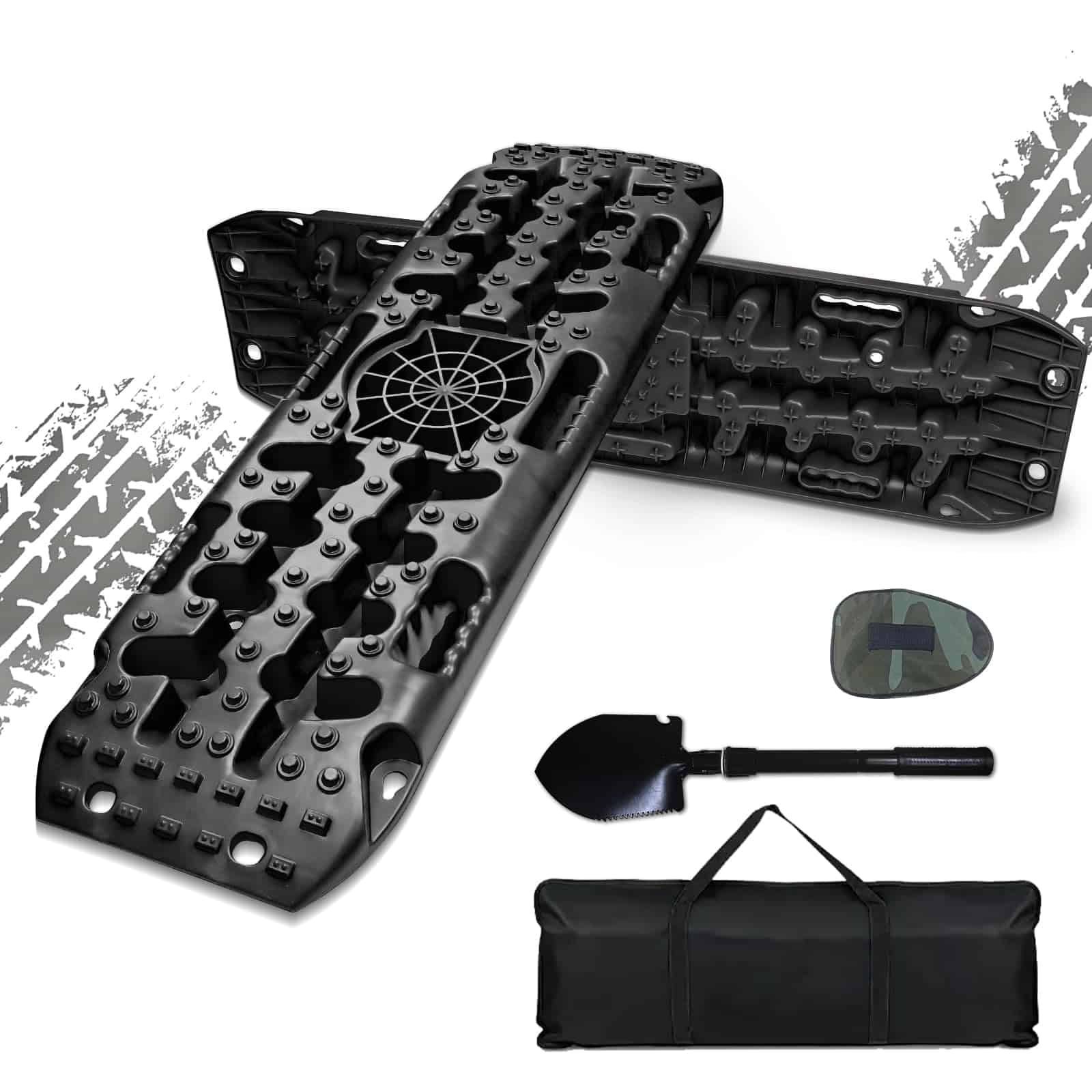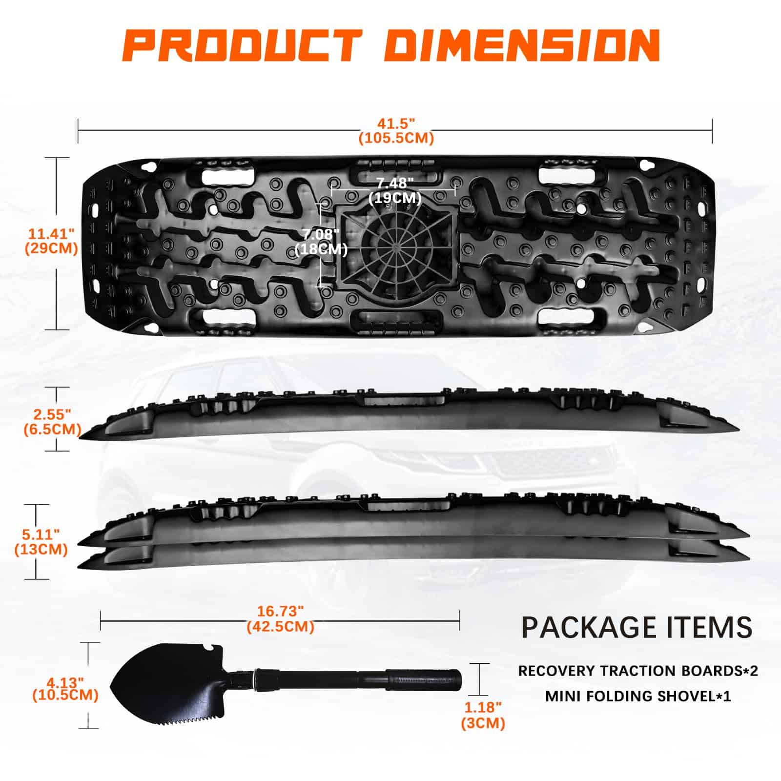 Off Road Traction Boards, 2 PCS Recovery Traction Tracks for 4WD Mud, Snow, Ice, Sand – Including Carry Bag & Mini Folding Shovel