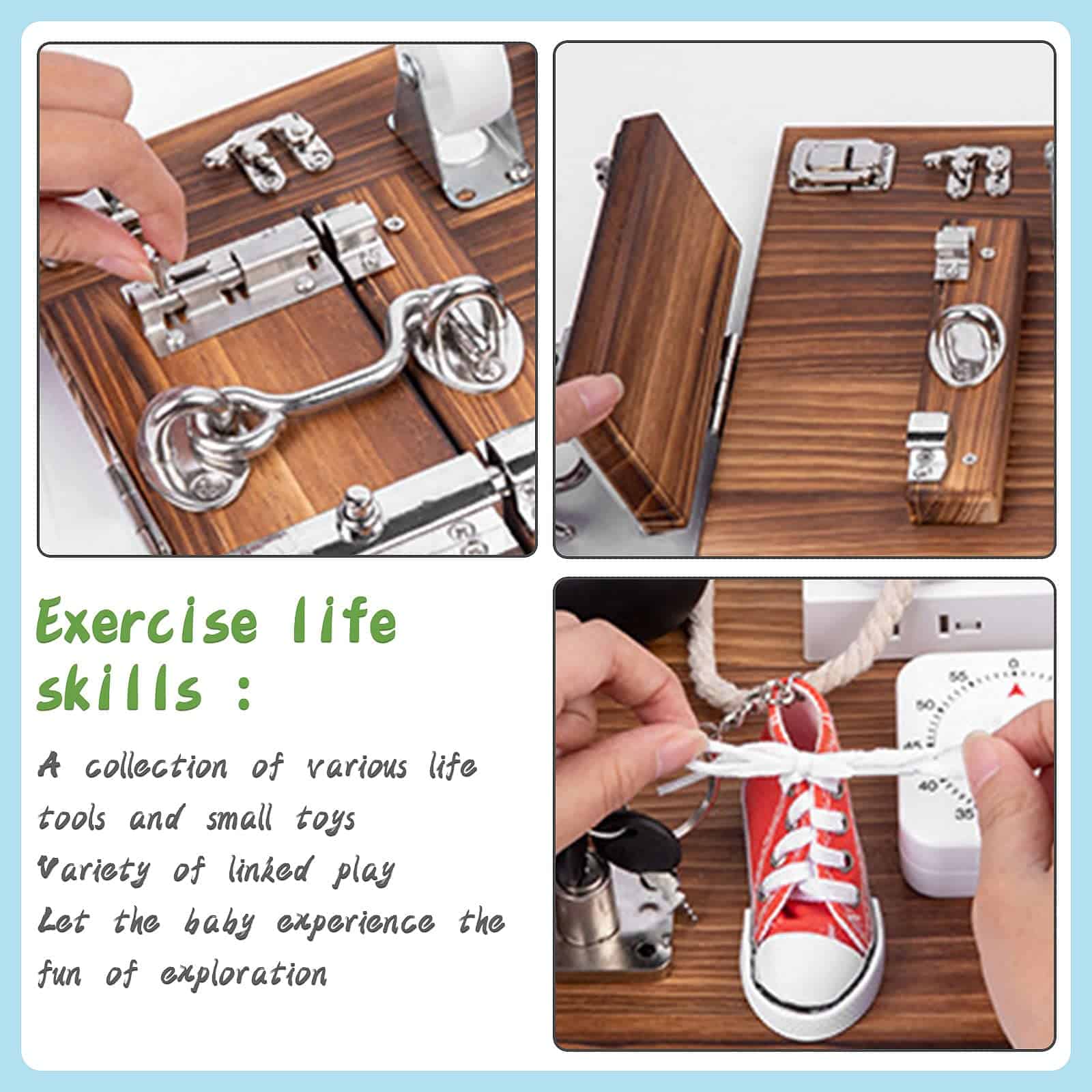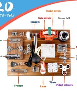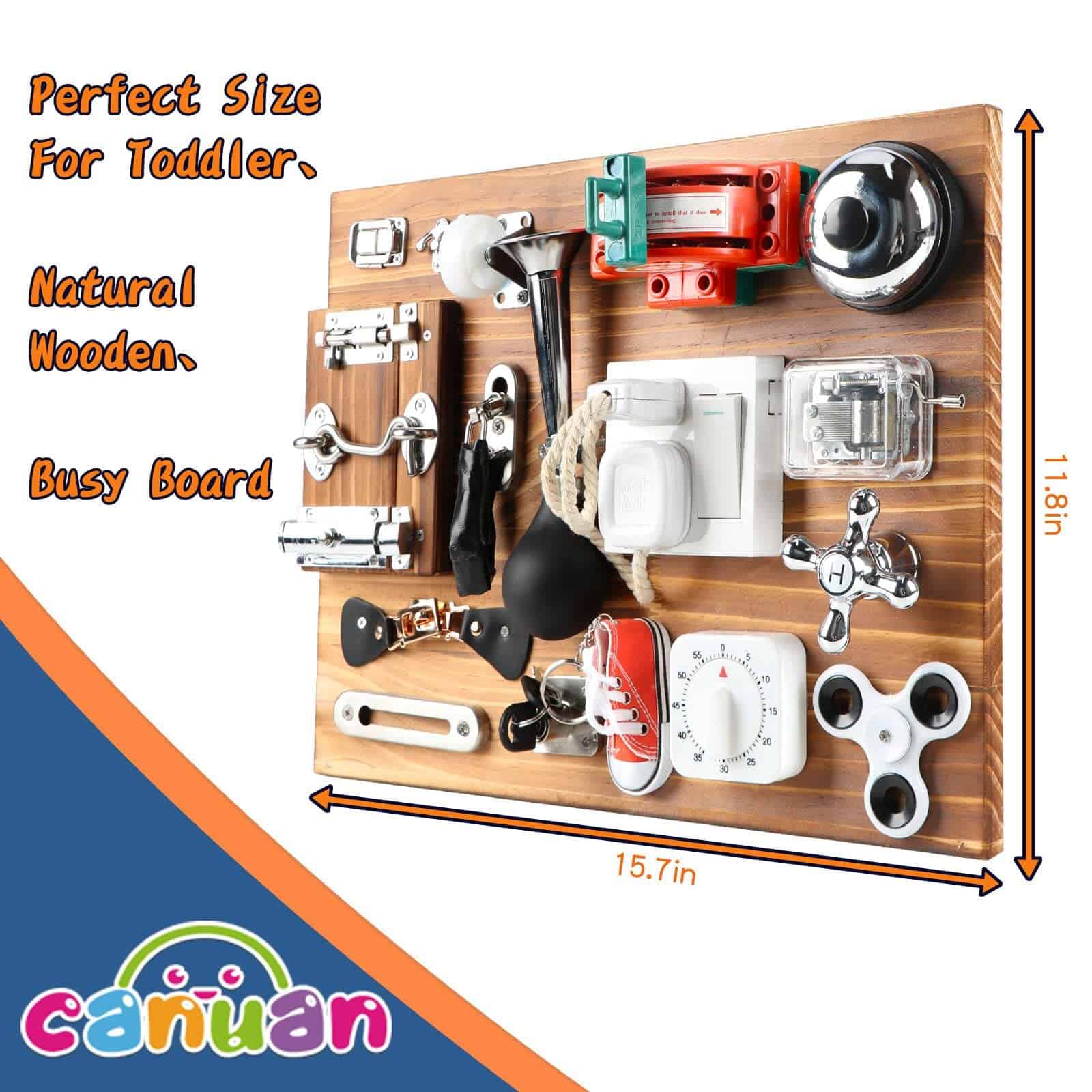 El tablero de actividades para niños Canuan 20-en-1 es un juguete educativo versátil que proporciona a los niños pequeños una variedad de actividades para aprender y jugar. Con actividades como zípers, cinturones, castañuelas, interruptores, campanas, cordones de zapatos, enchufes, hebillas de metal y cerraduras, este tablero de actividades fomenta no solo la diversión sino también el desarrollo de las habilidades motoras finas y cognitivas de los niños. Fabricado con madera de alta calidad y con un diseño ecológico, este juguete es seguro para que los niños jueguen. Es el regalo perfecto para fomentar la interacción entre padres e hijos, así como el crecimiento y desarrollo de los niños pequeños.