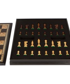 El tablero de ajedrez de madera de nogal de 19 pulgadas de Best Chess Set aporta una elegancia discreta a cada partido que juegas con él. Está bellamente hecho pero no es demasiado ornamentado hasta el punto de la distracción. Cuenta con cuadros de madera incrustados y cortados con precisión fabricados en madera de ébano y nogal de los EE. UU. Además, el tablero se levanta para permitir un fácil almacenamiento de las 32 piezas de ajedrez dentro del estuche. Las piezas de ajedrez pesadas se sienten geniales en la mano y están cuidadosamente fabricadas para el jugador de ajedrez serio. Estas piezas están hechas de madera de boj y se fabrican en India. Además, están acolchadas en la parte inferior para proteger su tablero. El rey mide 3.5 pulgadas de altura con una base de diámetro de 1.38 pulgadas. El peso total de este set con piezas es de 7 libras. Asegúrese de medir nuestras dimensiones indicadas para ver si se adaptan a sus necesidades antes de ordenar. Viene en empaque al por menor. Best Chess Set es una empresa con sede en California y este producto se ensambla en China en nuestra propia fábrica bajo rigurosos controles de calidad.