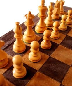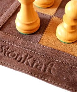 Tablero de ajedrez original de StonKraft de 19″ enrollable hecho de cuero genuino de alta calidad en color marrón. Las piezas de ajedrez son piezas de madera de Staunton de buena calidad en esquema de colores negro y blanco. Para los entusiastas del ajedrez, este ajedrez de tamaño de torneo puede ser una gran adquisición. También ahorra espacio, ya que se puede enrollar y guardar. Perfecto para picnics, viajes, y ahorro de espacio. Zoom para ver de cerca la precisión y experiencia de este ajedrez. Está cosido para darle un aspecto único y en relieve. Este es un producto exclusivo de StonKraft, por lo tanto, viene con el nombre de la marca grabado para establecer su autenticidad. Dimensiones: 19″ x 19″ Color: Marrón Material: Cuero Genuino Piezas de ajedrez: Piezas de madera Staunton – El rey mide 3.75 pulgadas y las otras piezas están en proporción a él.