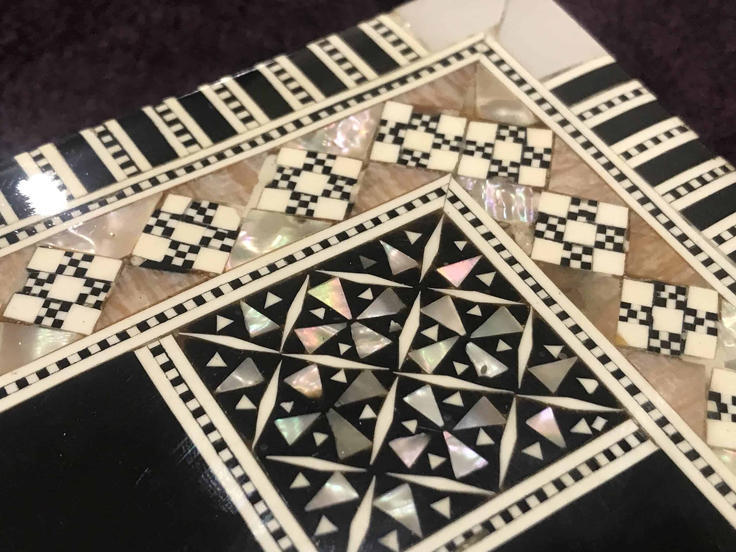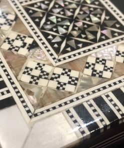 Este es un tablero de ajedrez solo sin piezas, tamaño del tablero 12″ tamaño cuadrado 1.25″, Madera de haya de alta calidad incrustada con auténtico nácar natural, No es solo un conjunto de ajedrez, podemos decir que es una obra de arte. Estas obras maestras son hechas a mano por artesanos de gran renombre.