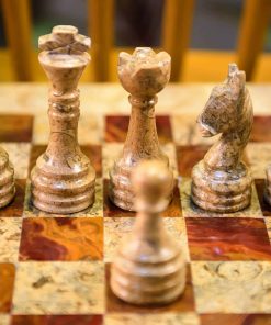 Según los datos desconocidos sobre el ajedrez, el primer tablero de ajedrez con cuadrados alternos de colores claros y oscuros apareció en Europa en 1090. Desde entonces hasta ahora se han realizado muchos avances y cambios en la fabricación de juegos de ajedrez. Sin embargo, la emoción y la sensación de felicidad al vencer al oponente sigue constante. Los fabricantes de juegos de mesa tienen un objetivo común de duplicar tu dosis de entusiasmo cada vez que juegues. Por lo mismo, este juego de ajedrez de mármol de 15 pulgadas ha sido especialmente elaborado a mano por nuestros hábiles artesanos para garantizar su forma y brillo perfectos. La exclusiva decoración interior para el hogar fabricada con el más alto y puro material de ónix, mientras que el mármol los acompaña para aumentar la belleza del juego de mesa. Este juego de decoración para el hogar viene en un embalaje seguro ya que es un artículo frágil. El juego de ajedrez del rey viene con el conjunto completo de 32 figuras de ajedrez que se consideran una esencia del juego de ajedrez. Esta decoración para el hogar simple pero elegante también se puede presentar como un artículo de regalo para tus seres queridos e incluso para niños para estimular su imaginación y toma de decisiones, ayuda a los pensadores estratégicos y facilita el aprendizaje de habilidades de vida esenciales. Además, estos nuevos juegos de mesa también sirven como un hermoso elemento de decoración para el hogar que los espectadores seguramente admirarán. En caso de cualquier consulta antes de la compra hasta el servicio postventa, nuestro equipo de servicio al cliente está aquí para servirte. Además, permitimos un período de gracia de 30 días en caso de cualquier reemplazo e intercambio, y hacemos nuestro mejor esfuerzo para ir más allá para la satisfacción de nuestros clientes.