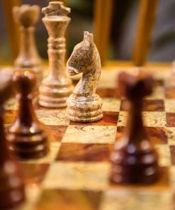 1. CALIDAD SUPERIOR: Este juego de ajedrez Staunton está fabricado con la mejor calidad de mármol. Además, el toque de mármol se ha dado en la base del juego de mesa, ya que cada pieza es única en apariencia.