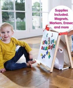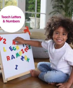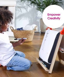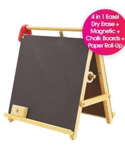 El caballete portátil se puede colocar en una mesa o escritorio para que los niños lo alcancen fácilmente. Pueden dibujar o pintar en la mesa, trabajar con tiza en la pizarra o jugar con imanes en la pizarra blanca.