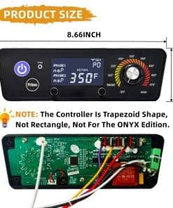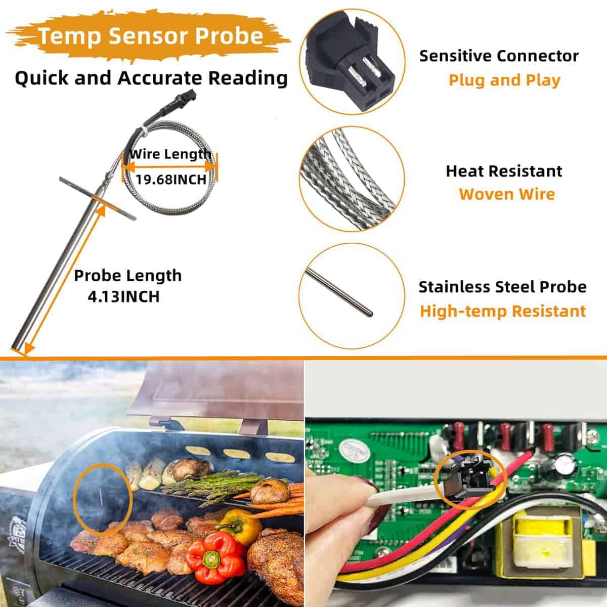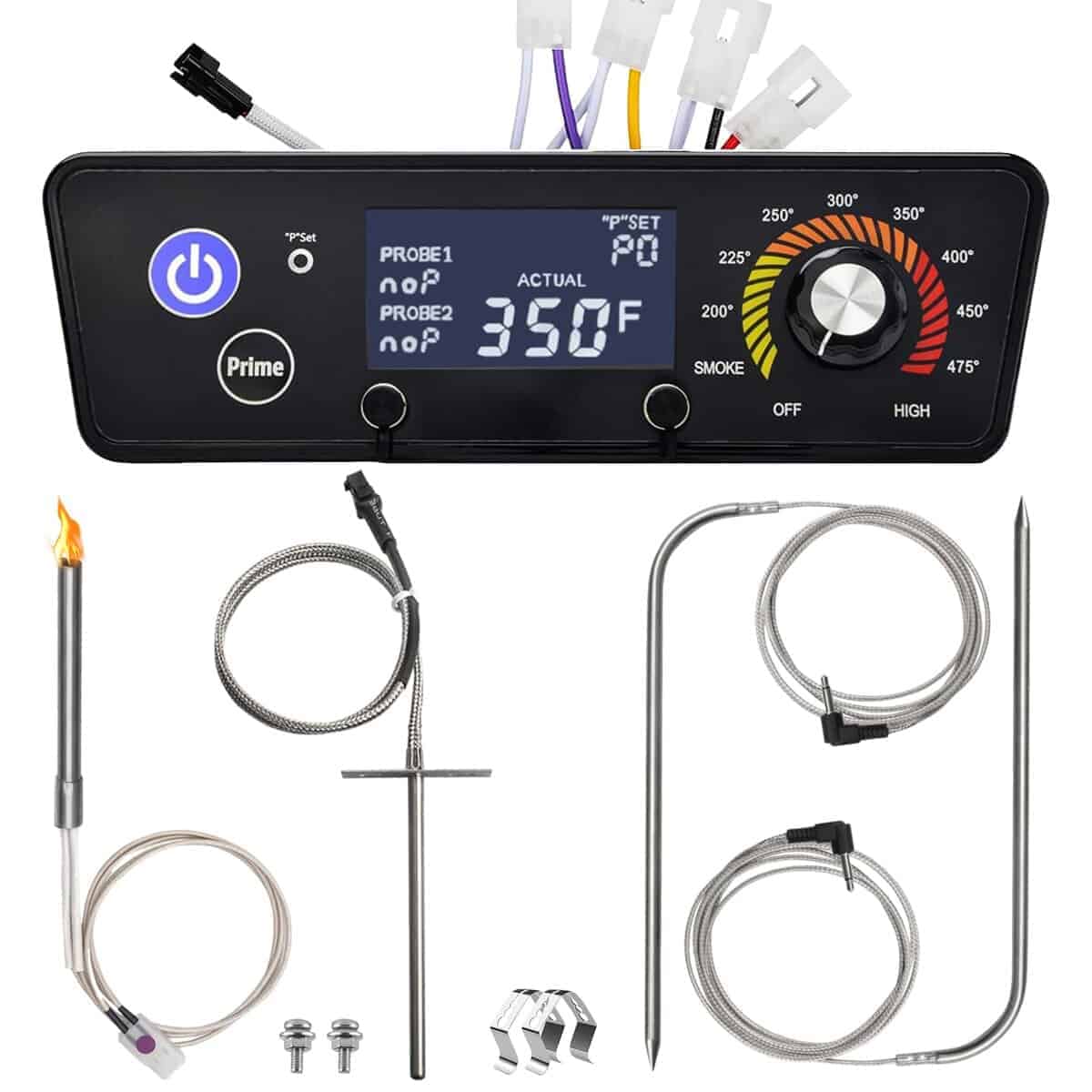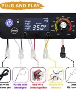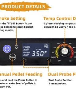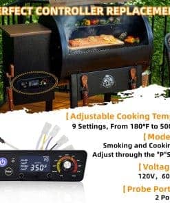 Tablero de control digital mejorado con pantalla LCD para reemplazo de piezas compatible con Parrillas Pit Boss Austin XL 1000(PB1000XLW1), Classic 700(PB700FBW2), Lexington P7-540 y Tailgater 340(PB340TGW1). Resuelve el problema de control de temperatura que puede experimentar con el original. 9 ajustes de temperatura de cocción, con la posibilidad de ajustarla de 180 F a 500 F en incrementos de 25/50 F. En la configuración de humo, puedes acceder a 9 modos de alimentación de pellets diferentes(P0-P7). Mantiene mejor la temperatura que el original. Di adiós a los daños en el controlador causados por cortocircuitos. Nuestro tablero de control digital mejorado para Pit Boss está diseñado para evitar quemaduras en el controlador debido a cortocircuitos en la varilla de ignición. En la mayoría de los casos, incluso en caso de un cortocircuito, el fusible incorporado permanecerá intacto. Entrada: AC 120V, 60Hz (pin1-4); salida: AC 8V, 200mA (pin5-8). Solo necesitas quitar el tablero de control original, preparar un repuesto del controlador para Pit Boss, luego emparejar los colores de los cables en cada enchufe, un cable naranja conecta el ventilador, un cable rojo conecta el motor del tornillo sinfín, un cable púrpura conecta el encendedor y un cable negro conecta la corriente. Por lo que la instalación completa es plug and play, simplemente emparejando colores. Nuestras sondas de temperatura de repuesto para Pit Boss están hechas de acero inoxidable de grado alimenticio para monitorizar la temperatura de la carne o de la parrilla. El diseño en forma de bala proporciona una medición precisa y rápida de la temperatura y te alerta de los cambios de temperatura en segundos. El encendedor de varilla caliente de 200 vatios/120 voltios con cable de 21″ está cubierto por una funda de acero inoxidable que se calienta para una rápida ignición de pellets y dura más. Viene con un fusible para evitar que salte el GFCI. Garantía de satisfacción del cliente del 100%, no importa si tienes alguna pregunta cuando recibas los repuestos para parrillas para fumadores de pellets Pit Boss, puedes contactarnos directamente y te daremos una respuesta satisfactoria en un plazo de 24 horas y una solución satisfactoria.