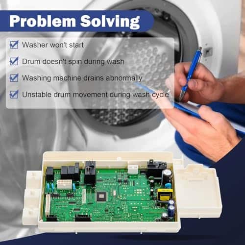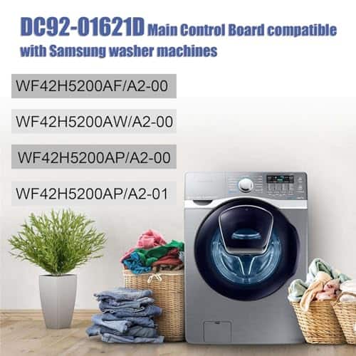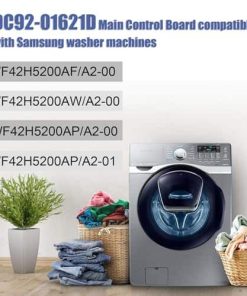 El tablero de control DC92-01621D es compatible con las lavadoras Samsung números: WF42H5200AF/A2-00 WF42H5200AW/A2-00 WF42H5200AP/A2-00 WF42H5200AP/A2-01. Este tablero de control de la lavadora resuelve los siguientes síntomas: 1. La lavadora no arranca; 2. El tambor no gira durante el lavado; 3. La lavadora drena anormalmente; 4. Movimiento inestable del tambor durante el ciclo de lavado.