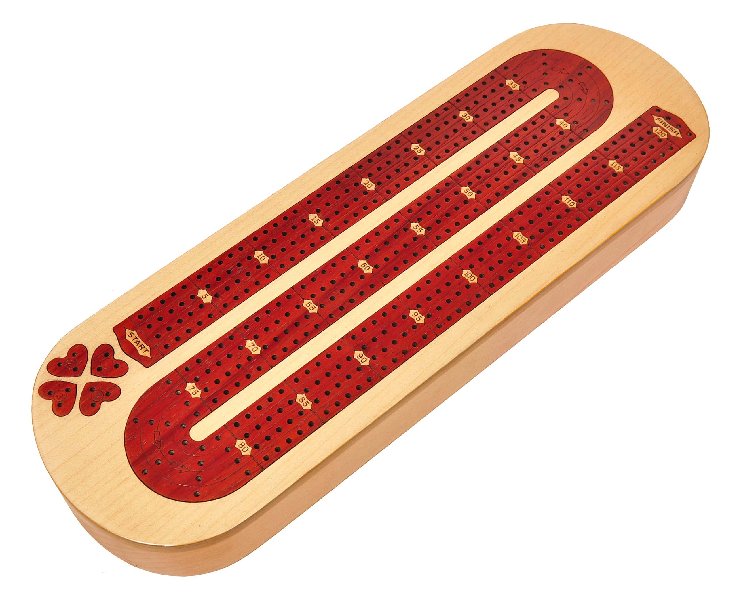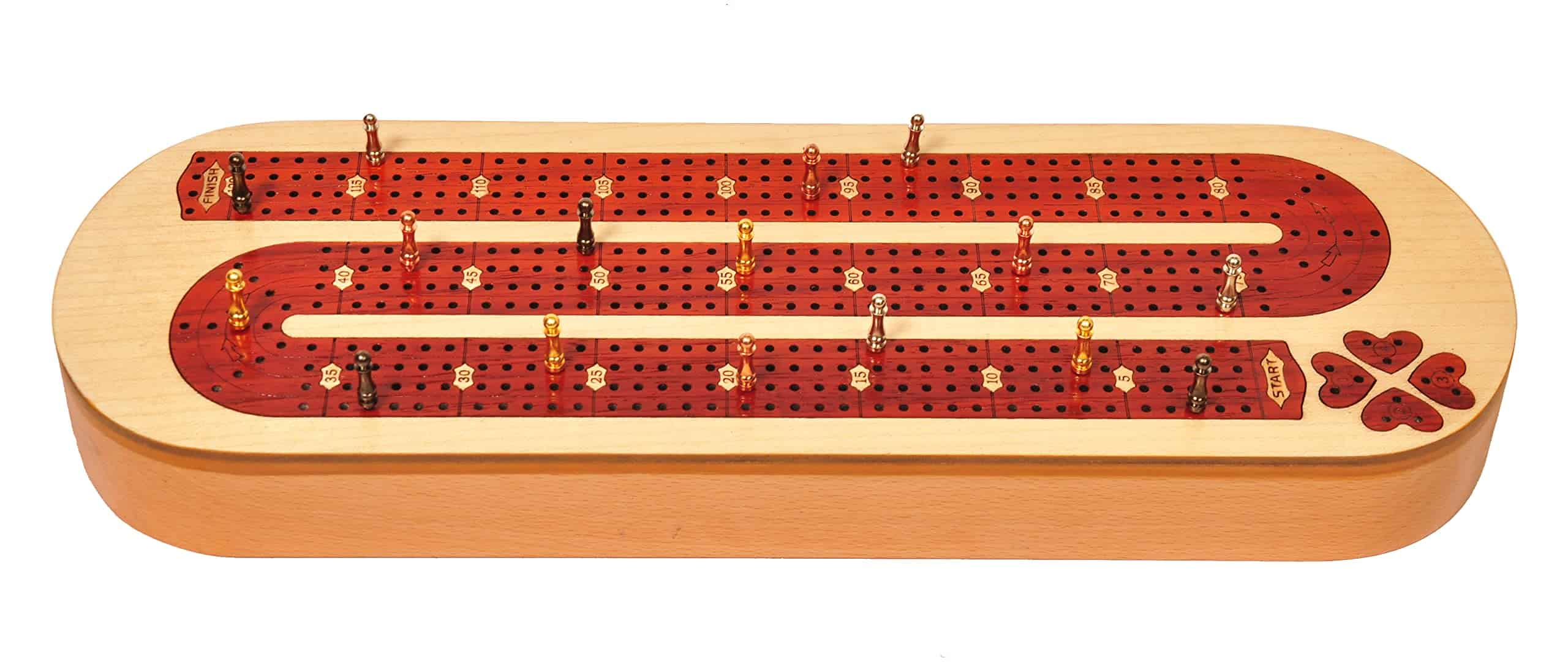 Palm Royal Handicrafts presenta un juego de tablero de cribbage de madera continua de 4 pistas confeccionado con Bloodwood y Maplewood.