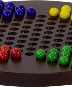 Juega con todos los seis jugadores o solo dos en este tablero de damas chinas tradicional. Ideal como juego de mesa en la mesa de café. Creado con madera de arce oscuro duro de origen local. El tablero viene en una caja que es ideal para almacenamiento. Las instrucciones están incluidas, así como una bolsa de almacenamiento para mantener juntas las canicas. Los tonos de color de las canicas de vidrio pueden variar.