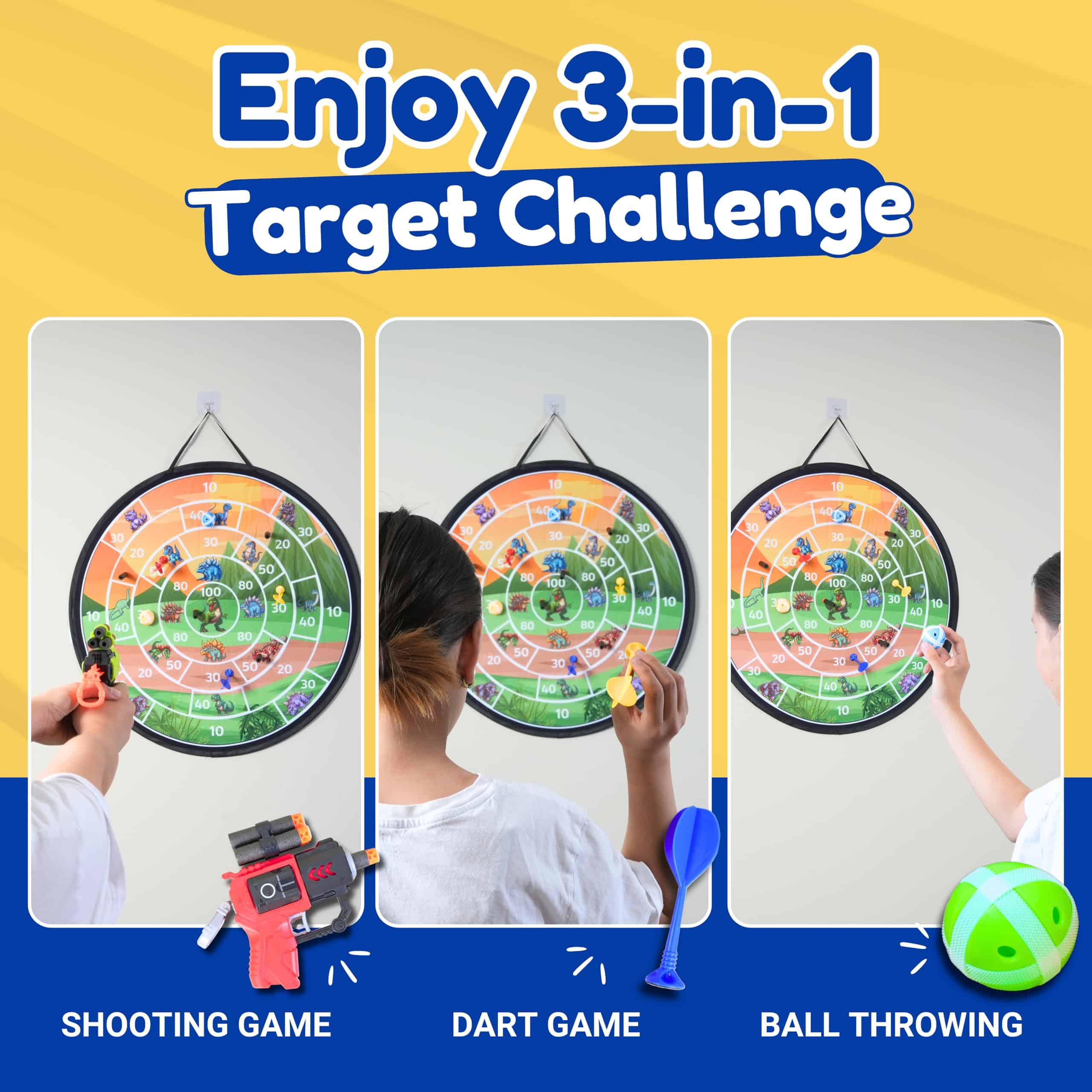 3. MENOS TIEMPO DE ESPERA: Más personas pueden jugar al mismo tiempo con tres formas de jugar: 1 – lanzar balas suaves de estilo Velcro desde la pistola de juguete, 2 – lanzar dardos pegajosos, 3 – lanzar bolas pegajosas. No hay que esperar con el tablero de dardos para niños de Lula.