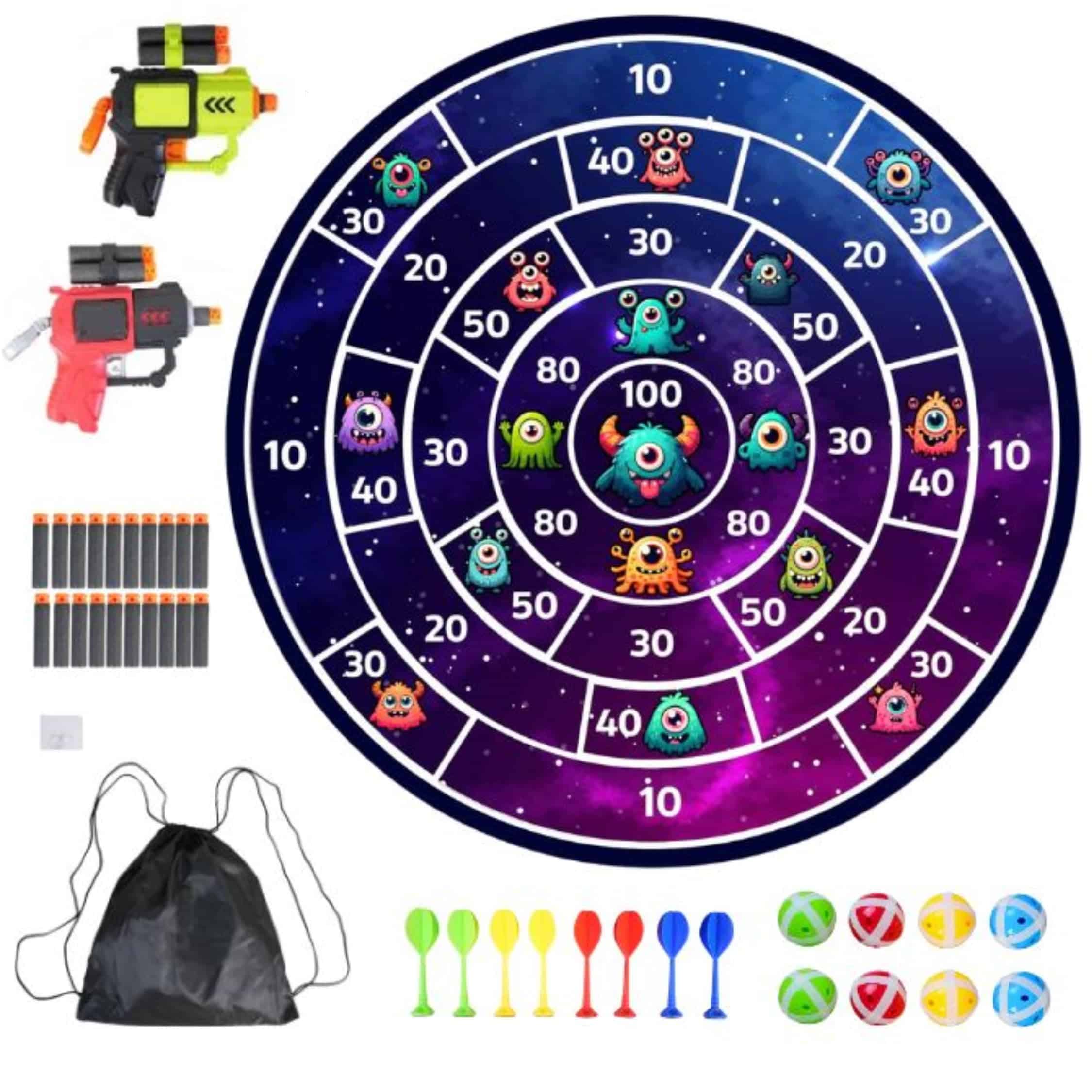 4. LO QUE OBTIENES: Paquete incluye: 1 tablero de dardos grande de 2 lados, 2 pistolas de juguete de estilo nerf con 20 «balas» de espuma suave y velcro, 8 bolas pegajosas, 8 dardos pegajosos, 1 gancho. El diámetro del tablero de dardos es de 29 pulgadas, el tamaño grande significa tasas de acierto más altas y más diversión para niños/principiantes.