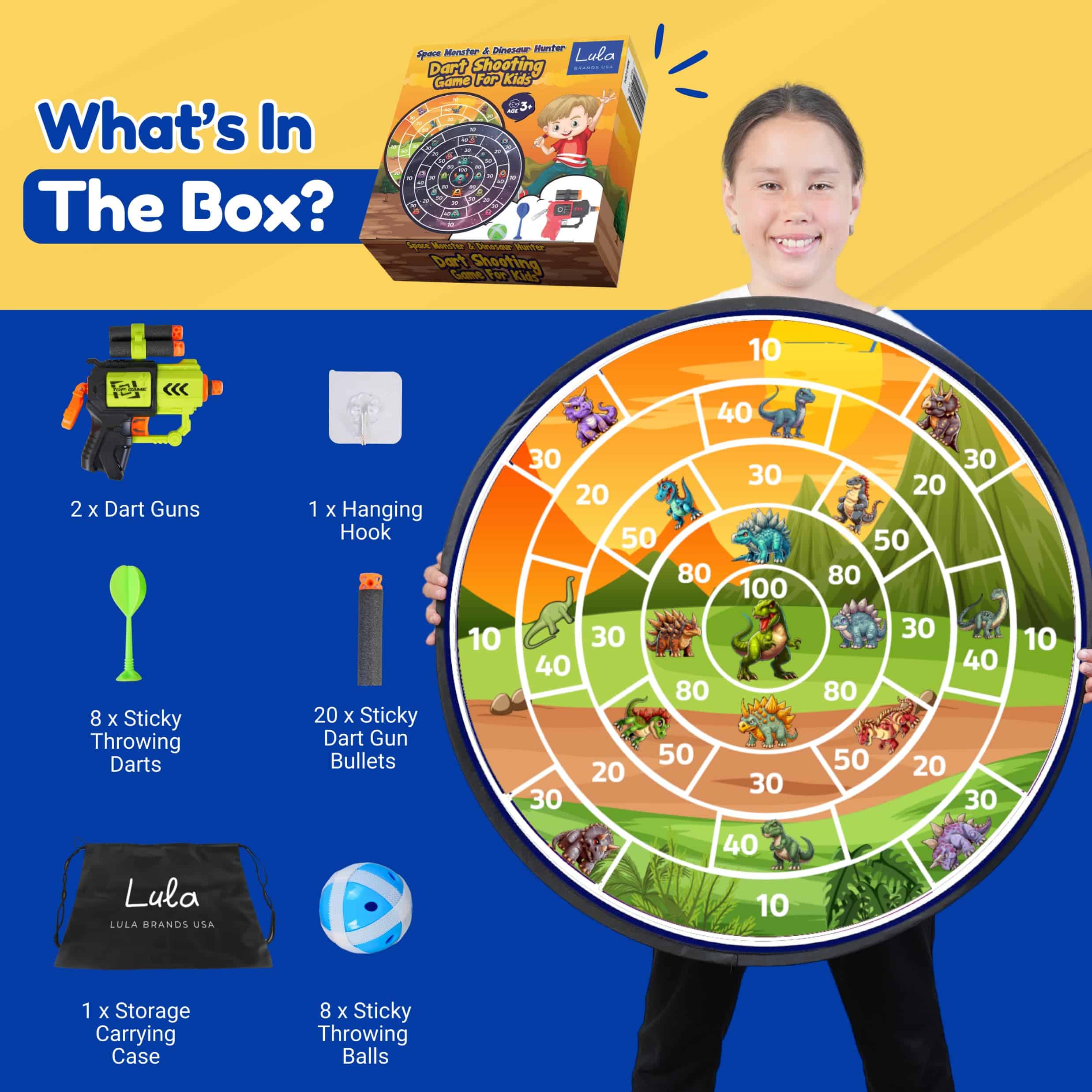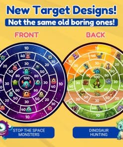 1. ¡NUEVOS DISEÑOS DE BLANCOS: Dispara a Dinosaurios y Extraterrestres – no son los blancos aburridos de siempre. Diseños coloridos y vibrantes. Los niños mejoran habilidades matemáticas – sumar puntajes, coordinación, reconocimiento de colores y niveles de atención y enfoque.