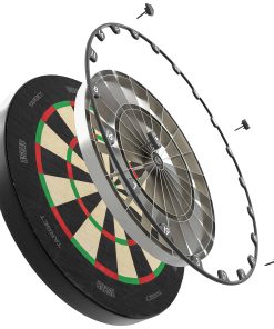 Tablero de Dardos Target – El Tablero de Dardos Aspar de Target Darts. Diseñado para modernizar el tablero de dardos tal como lo conocemos. Aspar es un tablero de dardos de sisal africano de alto rendimiento adecuado para el juego profesional y viene con varias mejoras a los tableros de dardos tradicionales para mejorar la experiencia de juego. Gráficos Simétricos y Minimalistas – Los gráficos minimalistas alrededor del tablero de dardos aseguran un enfoque constante en los dobles. Los gráficos simétricos permiten la rotación hasta diez veces sin afectar la apariencia visual, asegurando que tu tablero se vea nuevo en cada turno. Anillo de Números – El anillo de números ha sido actualizado del sistema tradicional y ofrece una apariencia más sutil en el tablero de dardos. Los números tienen una fuente actualizada y están posicionados para que siempre estén derechos. Sistema de Cables – El sistema de cables actualizado ha sido diseñado específicamente para aumentar la superficie de puntuación y reducir las oportunidades de rebotes. Color Mejorado – El Aspar tiene un esquema de colores vibrante y mejorado en todo el tablero de dardos debido a su proceso de impresión multicolor que ofrece una apariencia visual fuerte de forma consistente.