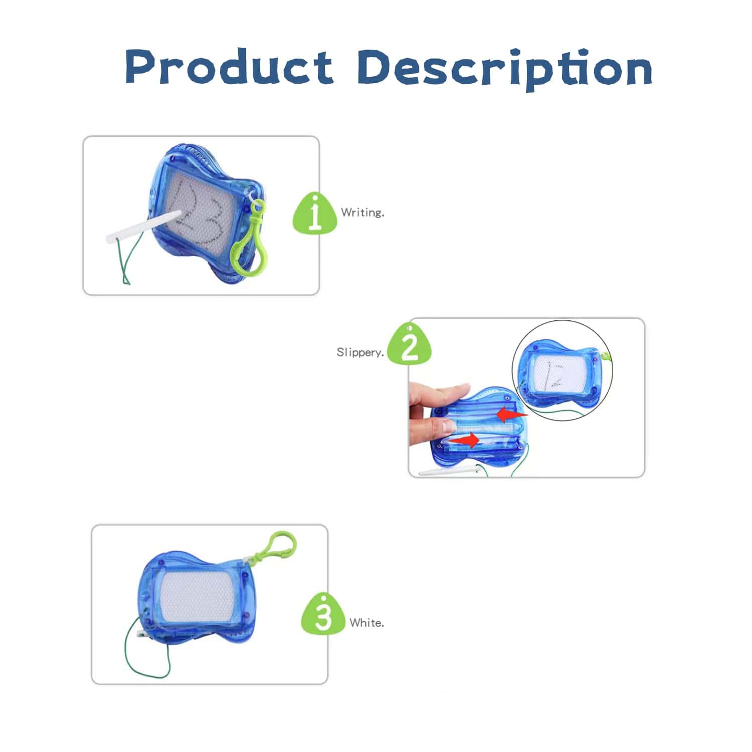 Este Tablero de Dibujo Magnético Mini LUKAKU es perfecto para mantener a los niños entretenidos y estimular su imaginación. Cada pack viene con un bolígrafo lápiz con cuerda adjunta y un llavero verde para mayor comodidad. Con un tamaño mini y un diseño lindo y de moda, es portátil y fácil de transportar para que los niños puedan disfrutar de la creatividad en cualquier lugar.