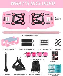 1. Tablero de Ejercicio de Flexiones y Sistema de Entrenamiento de Resistencia Versátil: Este tablero plegable de flexiones está hecho de material de alta calidad ABS, soportando hasta 300 libras. Cuenta con nueve posiciones de flexiones para dirigir diferentes grupos musculares, incluyendo el pecho, hombros, tríceps y espalda. La base antideslizante y las manijas ergonómicas de flexiones proporcionan un entrenamiento estable y seguro. El sistema está diseñado para entrenamiento de fuerza de cuerpo completo, permitiéndole acoplar bandas de resistencia para mayor intensidad. Ideal para uso en casa, gimnasio o viajes.