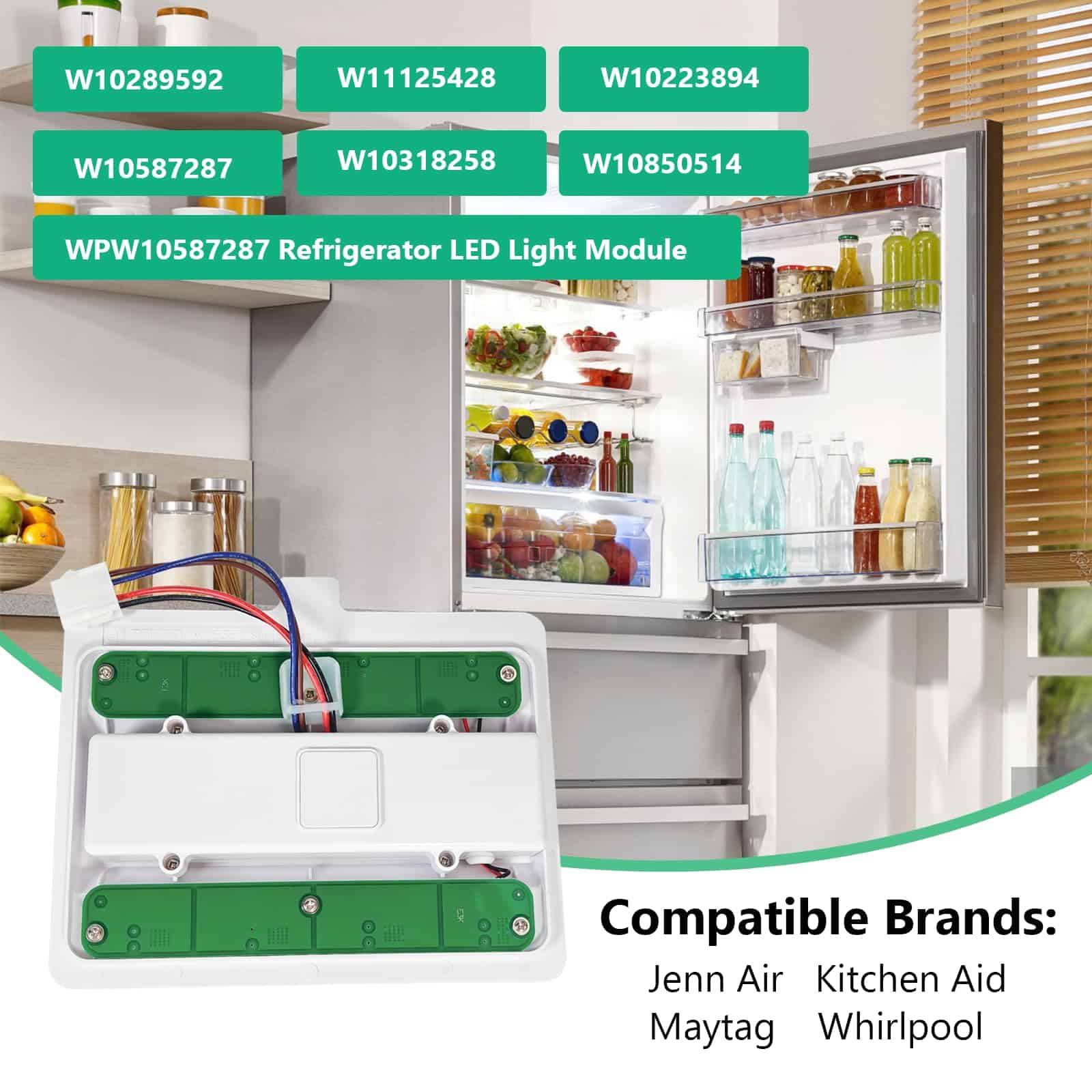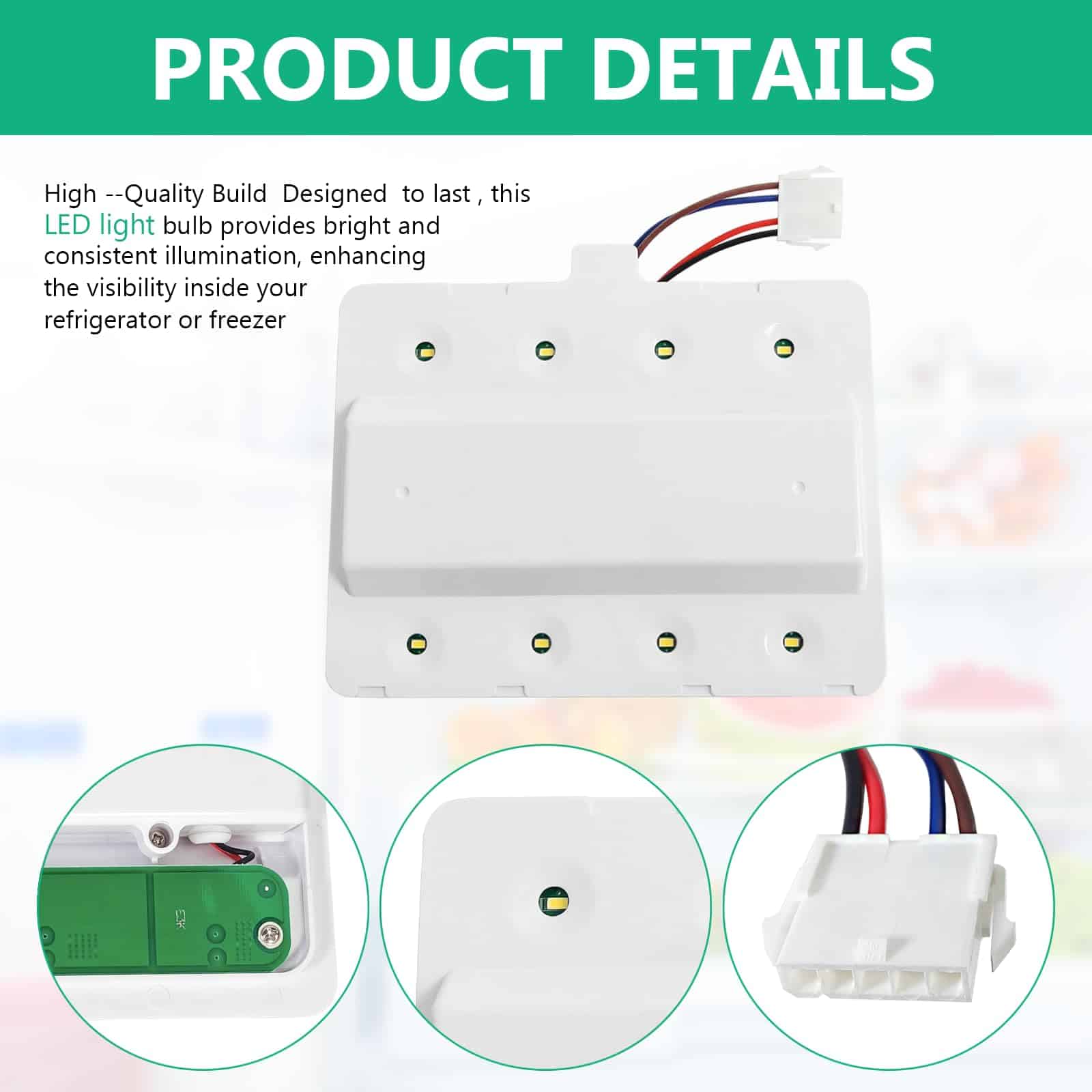 Con su proceso de instalación sencillo, puedes reemplazar rápidamente la antigua y tenue luz de tu refrigerador. Las luces LED brillantes y de larga duración iluminarán cada rincón de tu refrigerador, asegurando que puedas ubicar fácilmente tus artículos. Además, la amplia compatibilidad de este módulo lo hace adecuado para varios modelos de refrigeradores Whirlpool y Maytag, incluyendo refrigeradores de puertas francesas y de montaje inferior.
