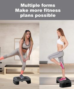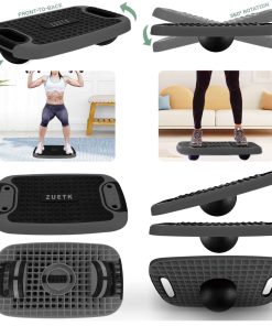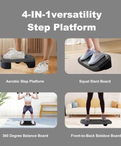 Tablero de Equilibrio Aeróbico 4 en 1 y Plataforma de Ejercicios Step Up de ZUETK, ideal para usuarios de todos los niveles y edades. Está construida con material resistente de alta densidad PP y TPE, que garantiza la seguridad en los movimientos y una larga durabilidad. Viene con 2 discos de equilibrio y una pelota de equilibrio para intensificar la dificultad del entrenamiento ajustando la plataforma. Transforma la plataforma en un tablero de inclinación para estiramientos profundos, gracias a la superficie antideslizante que evita resbalones y deslizamientos. La plataforma es ligera y compacta, lo que te permite llevarla a donde quieras. Los elevadores apilables se pueden guardar fácilmente debajo de la plataforma para un almacenamiento conveniente en espacios pequeños. Realiza una variedad de ejercicios aeróbicos, cardio y HIIT, como planchas, cruces, saltos de burpee, rodillas arriba y dips, para potenciar tus músculos, quemar calorías, perder peso y mejorar la salud cardiovascular. Perfecta para clases de ejercicio, recuperación de lesiones o rutinas de entrenamiento en casa o en el gimnasio.