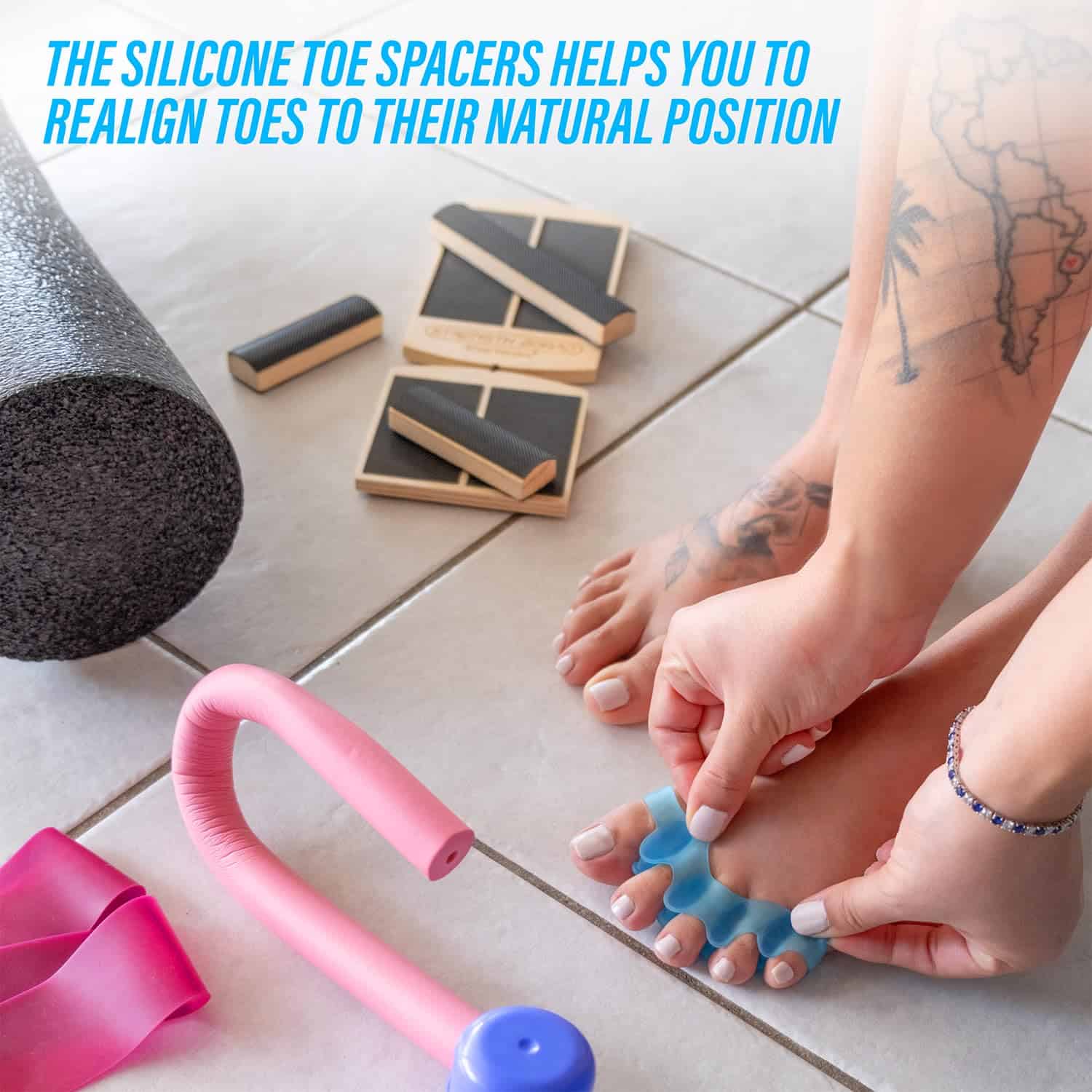 6. INCLUYE SEPARADORES DE DEDOS DE SILICONA Y BOLSA DE VIAJE Este conjunto de tablero de equilibrio viene con separadores de dedos de silicona para ayudar a separar y alinear los dedos del pie, promoviendo una posición natural y cómoda del pie durante el entrenamiento y la recuperación. También se incluye una práctica bolsa de viaje para un transporte y almacenamiento sencillos.