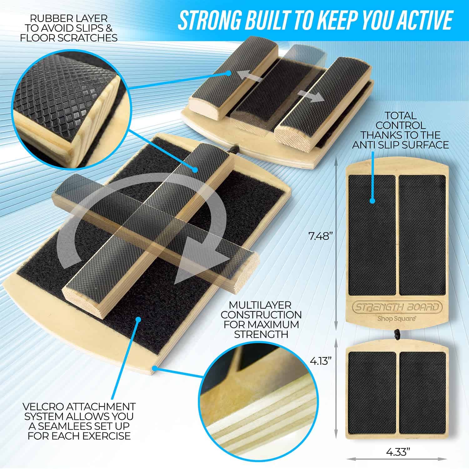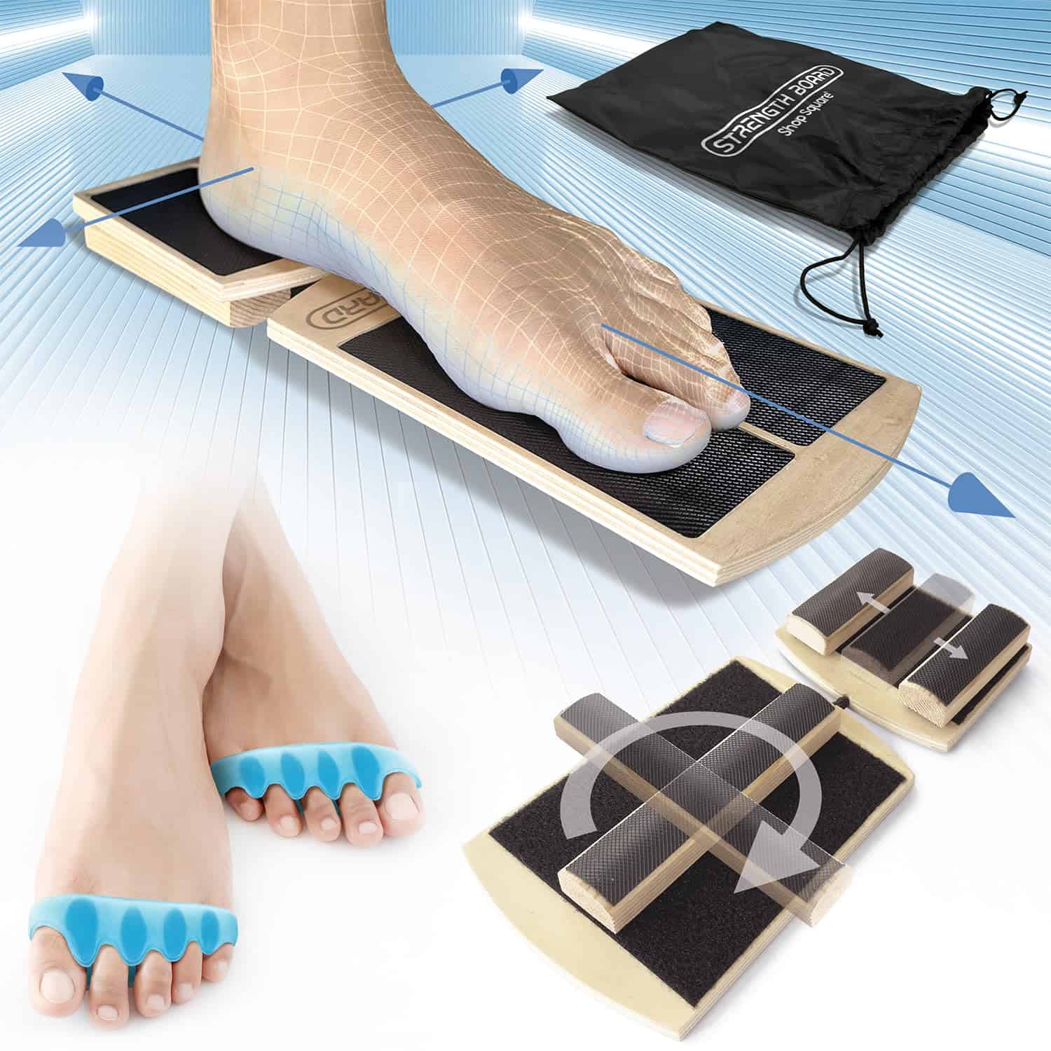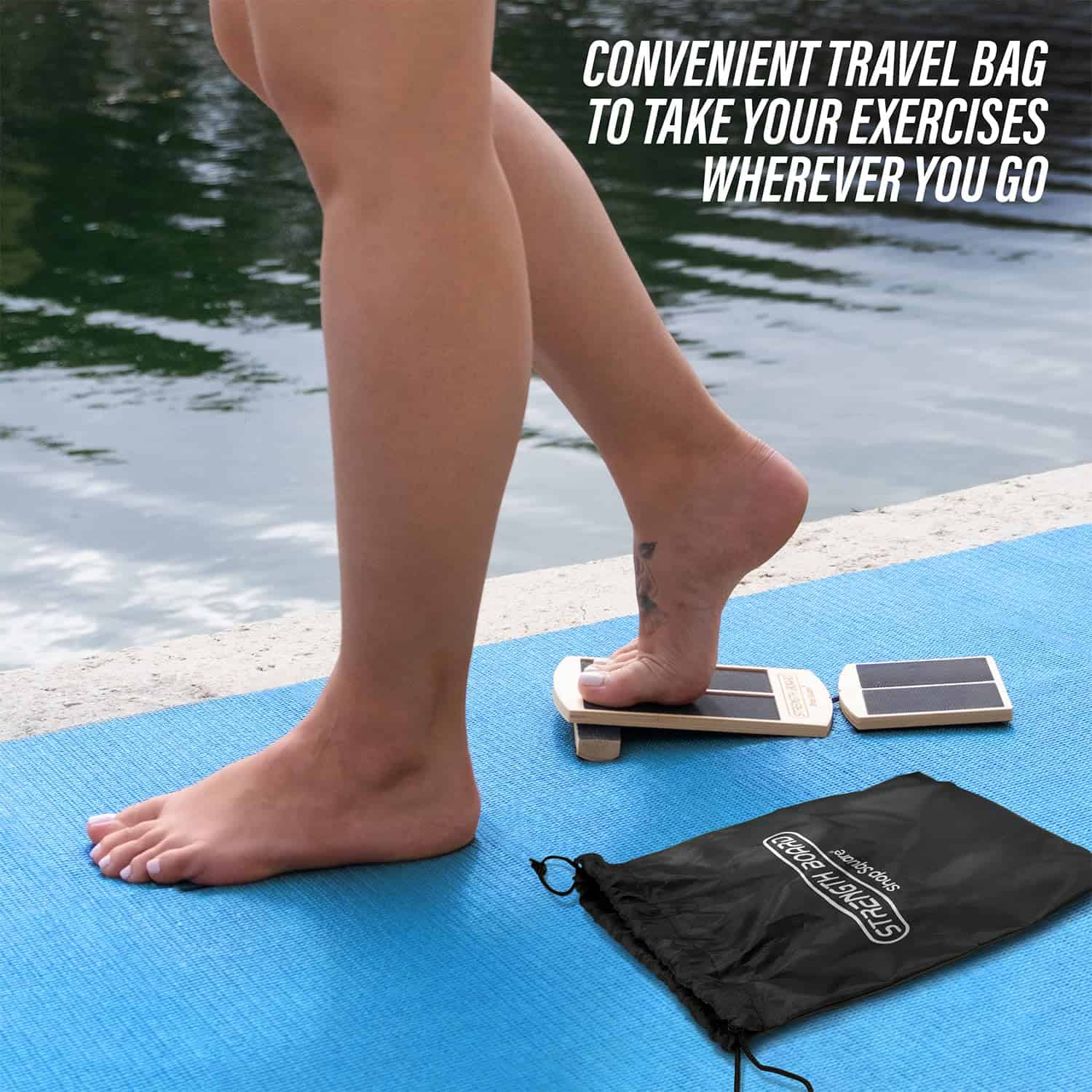 4. DISEÑO DURADERO Y PORTÁTIL Fabricado con contrachapado de abedul de alta calidad con una superficie antideslizante, este tablero de movilidad para el tobillo ofrece un entrenamiento seguro y protegido. Compacto y ligero con una bolsa de almacenamiento incluida para un transporte fácil.
