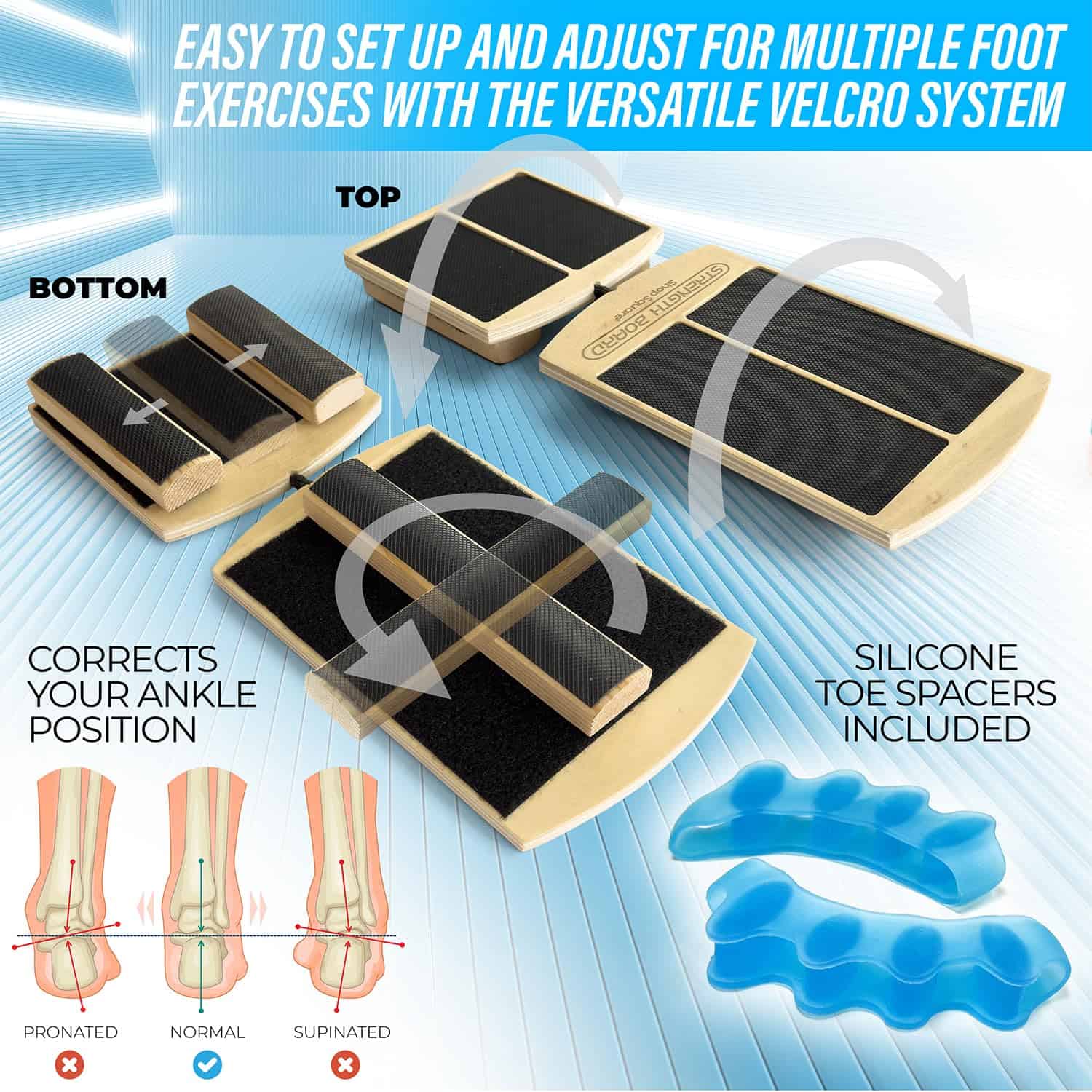 1. ENTRENAMIENTO PERSONALIZABLE PARA LA FUERZA Este tablero de equilibrio para tobillo cuenta con paneles ajustables y una barra de equilibrio de Velcro, lo que te permite personalizar tu entrenamiento para la movilidad, estabilidad y coordinación del tobillo. Ideal para rehabilitación, prevención de lesiones y entrenamiento deportivo.