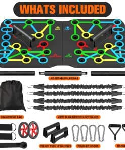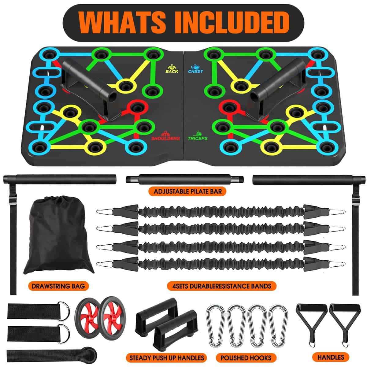 3. Viene con accesorios de fitness: Los juegos de tableros de flexiones suelen venir con accesorios adicionales de fitness, como ruedas abdominales, barras de Pilates, etc., para ampliar las opciones de ejercicio y mejorar los resultados del entrenamiento.