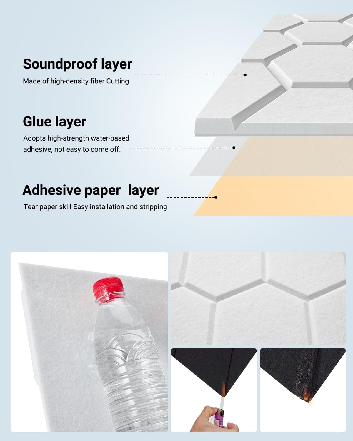 5. Precaución: Recomendamos medir el área prevista antes de comprar para asegurarse de tener suficientes paneles para satisfacer sus necesidades de insonorización y decorativas. Esto evita que se pasen por alto áreas, asegurando que se cumplan sus expectativas.