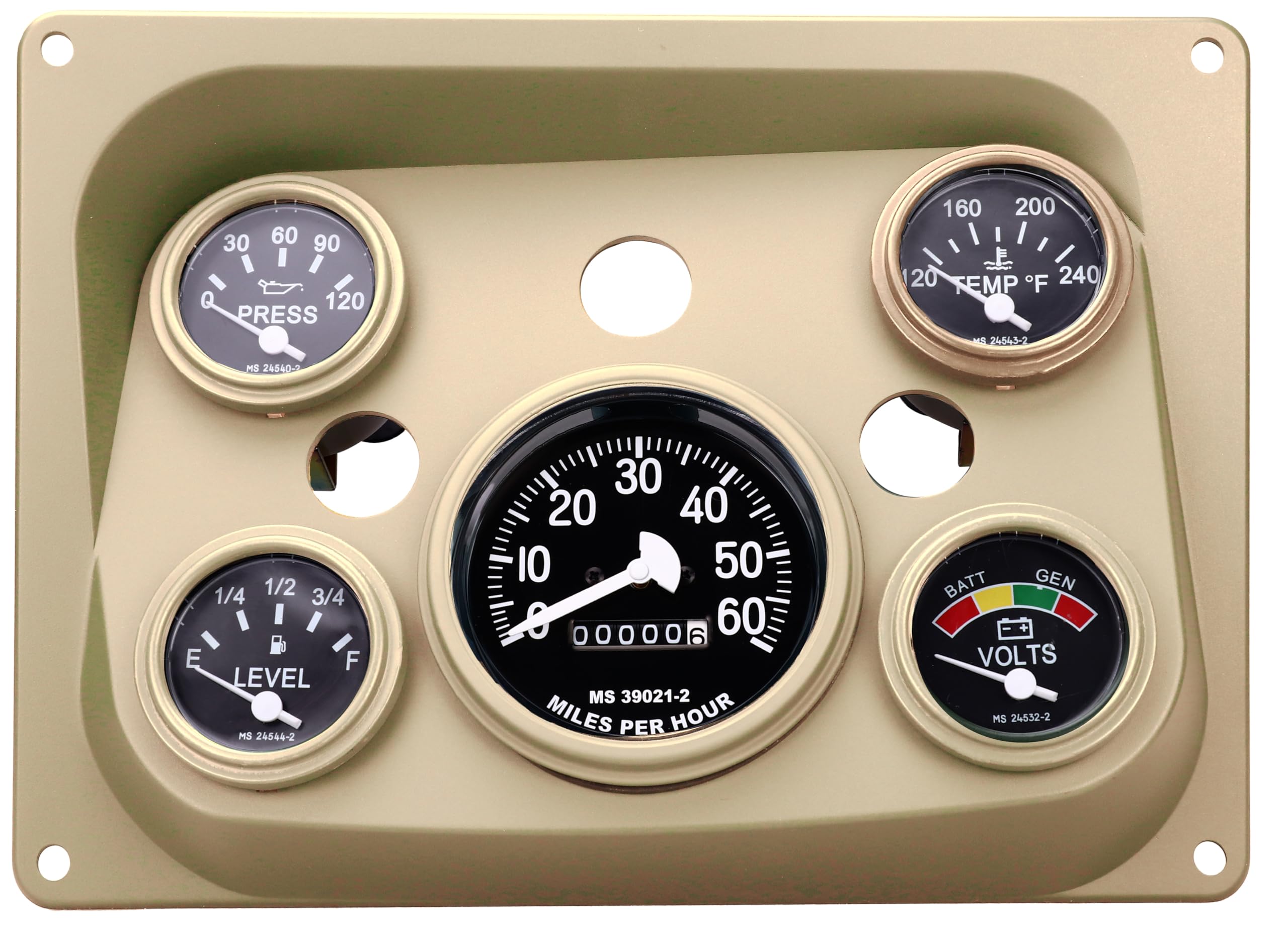 Tablero de instrumentos de la serie Humvee de Motor Meter Racing. Panel de instrumentos de plástico NSN: 2510-01-303-5769. Empaquetado: Panel de instrumentos. Garantía limitada de un año por daños que no sean causados por el factor humano y soporte técnico gratuito de por vida.