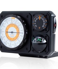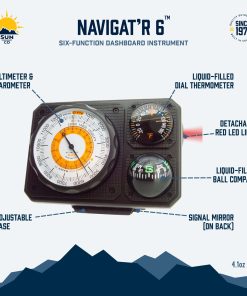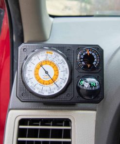 Práctico altímetro/barómetro/brújula/termómetro/luz LED/espejo de señal se adhiere a la PARTE FRONTAL o SUPERIOR del tablero. Mide la altitud en pies. Mide la temperatura en Fahrenheit.