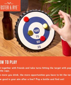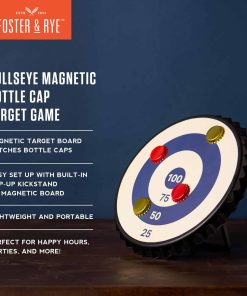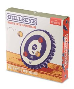 ¡Con Bullseye, cuánto más bebes, más oportunidades tienes de dar en el blanco! Con su cara magnética, este tablero está diseñado para tapas de botellas abiertas. Esta divertida variante de un clásico de bar seguramente será un éxito en tu próxima reunión!