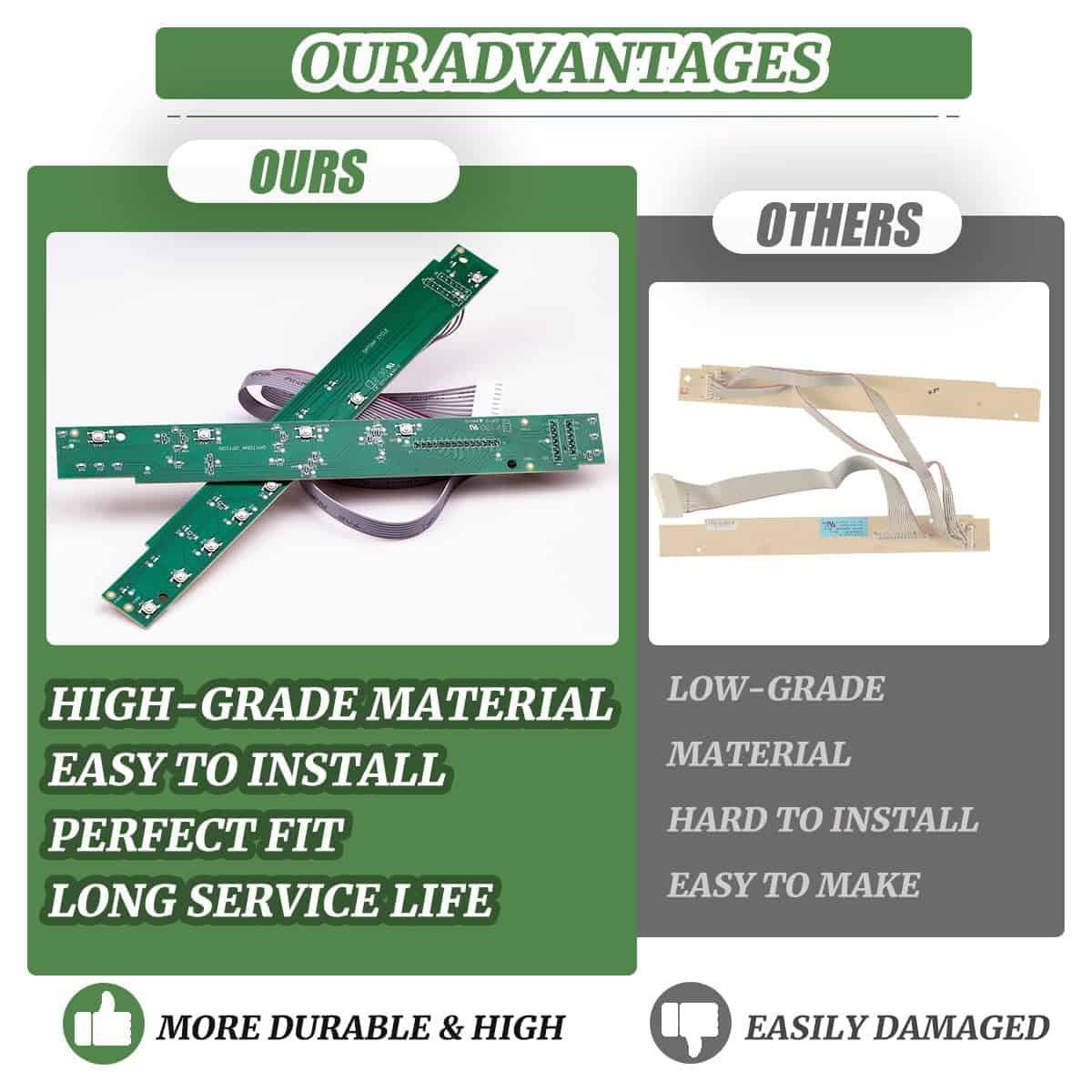 Tablero de pantalla de lavavajillas XDDPRO ensamblaje de interruptor Número de parte 5304517587 compatible con Electrolux Frigidaire. Este tablero de pantalla de lavavajillas es un reemplazo perfecto para una variedad de lavavajillas Frigidaire, incluidos los modelos FGID2466QB7A, FGID2466QD2A, FGID2466QF7A, FGID2466QF8A, FGID2466QF9A, FGID2466QW7A, FGID2468UD0A, FGID2468UD1A, FGID2468UD2A, FGID2468UF0A, FGID2468UF1A, FGID2468UF2A, FGIP2468UD0A, FGIP2468UD1A, FGIP2468UD2A, FGIP2468UF0A, FGIP2468UF1A, FGIP2468UF2A. Esta pieza está hecha de materiales de calidad, lo que garantiza un rendimiento excelente y una operación confiable. No solo es fácil de instalar y reemplazar, sino que también es un producto de mercado de accesorios de alta calidad. No dudes en contactarnos si tienes alguna pregunta sobre este producto.