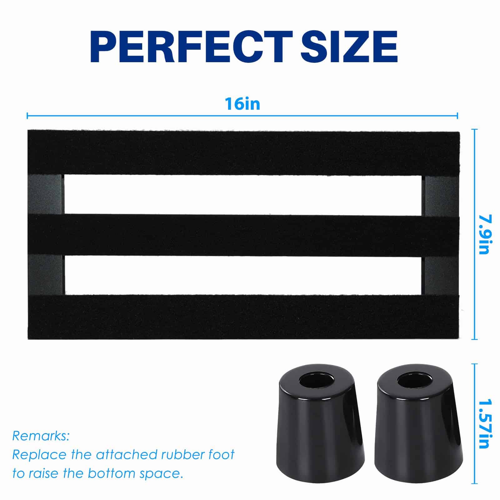 Los cuatro pies de goma en cada esquina de la base garantizan que el pedalboard no se mueva cuando está en uso.