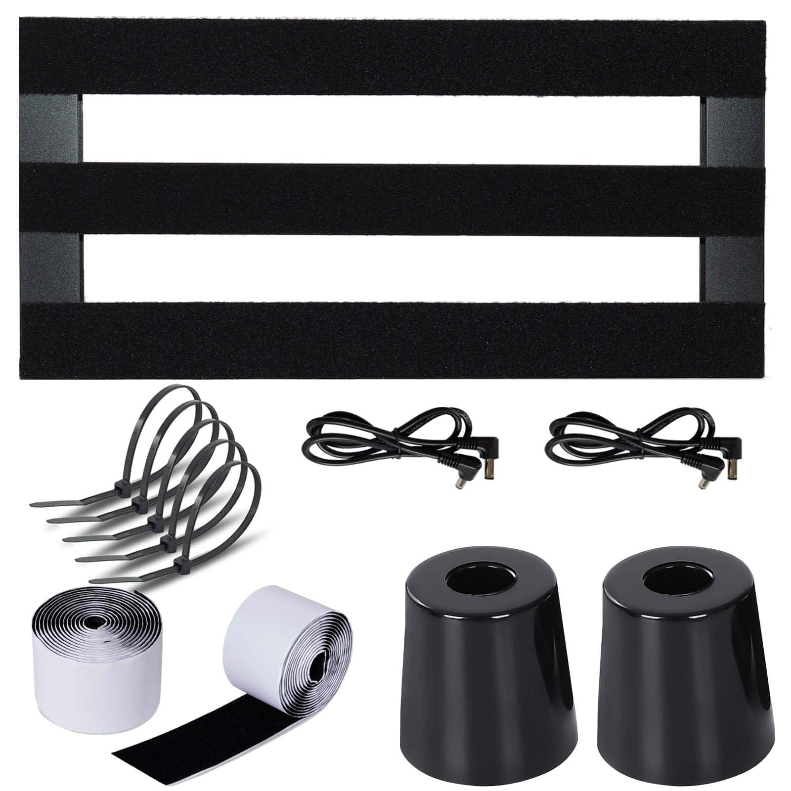 (1) x Pedalboard | (21) x Cintas de montaje | (2) x cables DC | (5) x Bridas para cables»