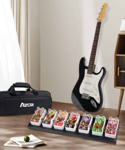 Tablero de pedales de guitarra AZOR fabricado en aleación de aluminio de alta calidad, con un peso de 2.4lb, ideal para transportar tus pedales de efecto de forma segura y conveniente. Incluye una bolsa de transporte impermeable de tela Oxford 800D acolchada para proteger tus pedales durante los desplazamientos. La construcción en aleación de aluminio sin soldadura lo hace sorprendentemente resistente y ligero, perfecto para uso en conciertos o en casa. Las dimensiones de 18.5» x 4.9» x 2.7» garantizan un amplio espacio para colocar tus pedales de efecto de forma ordenada. Además, incluye cinta adhesiva de gancho y lazo profesional para asegurar los pedales y bridas para una instalación fácil y segura.